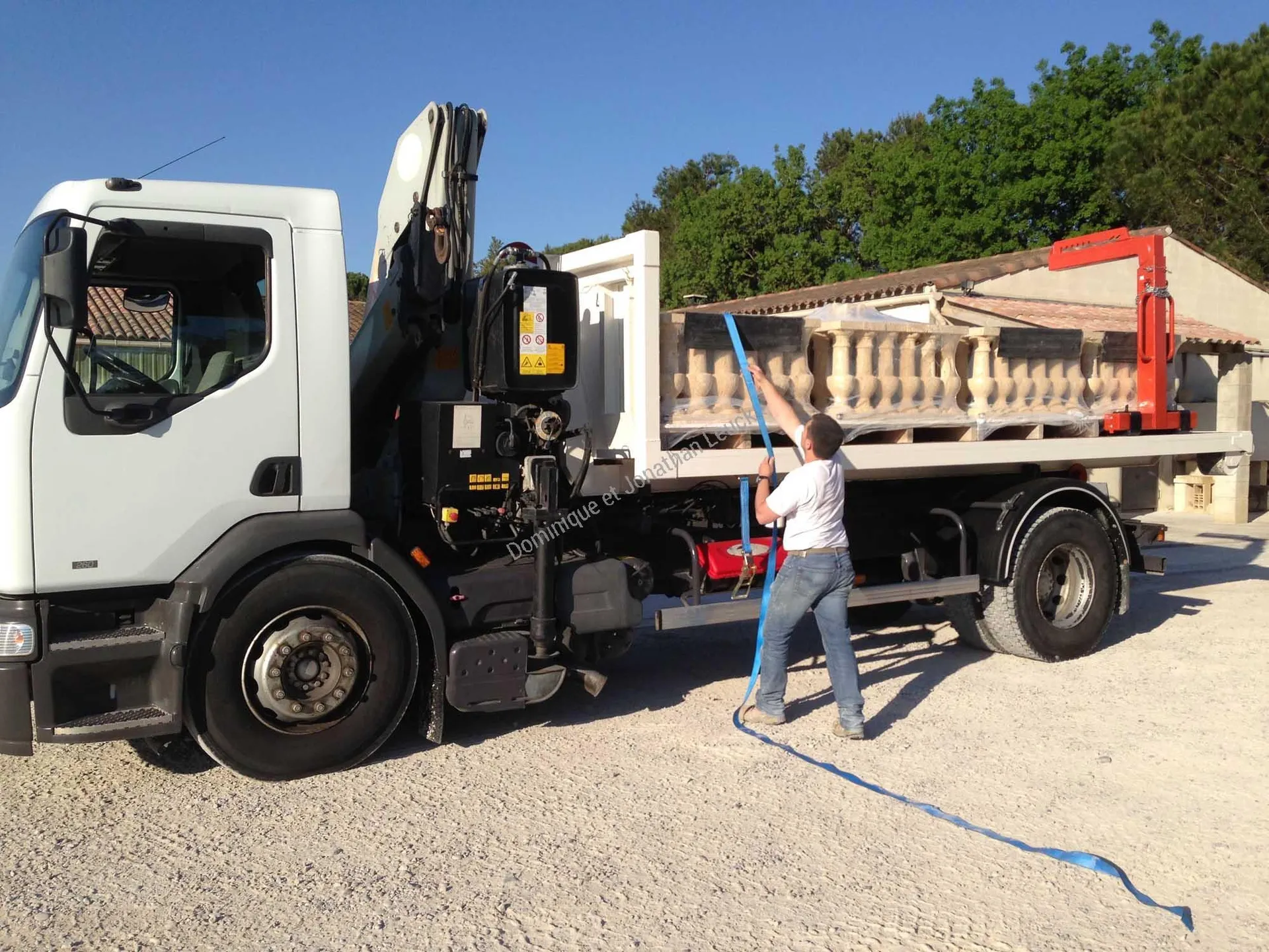 Acquisition en 2013 de notre camion Renault avec grue et ampirole sur notre site de Tarascon en Provence.
