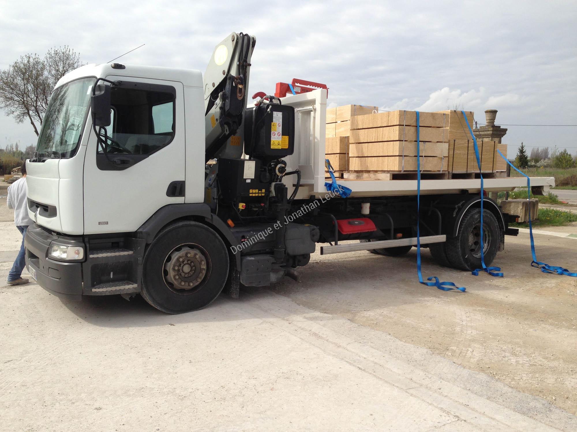 Acquisition en 2013 de notre camion Renault avec grue et ampirole sur notre site de Tarascon en Provence.