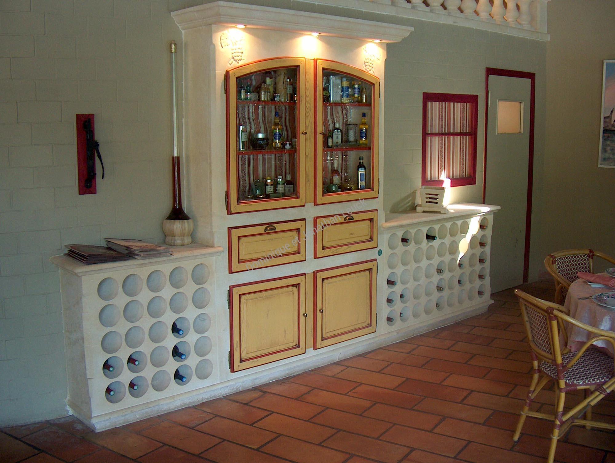 Armoires et casier à bouteilles en pierre d'Estaillades.