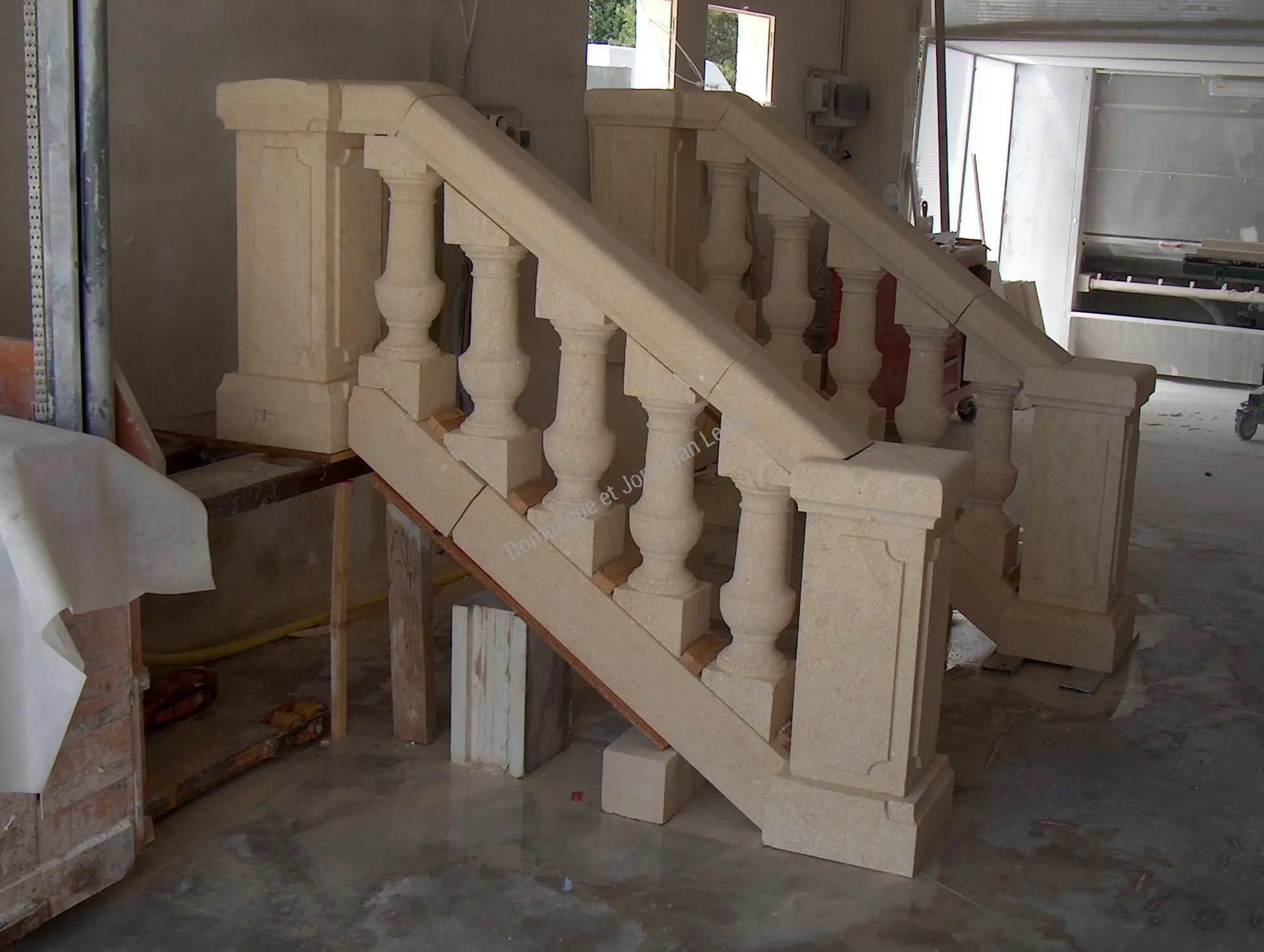 Rénovation d'une Balustrades extérieure d'escalier en pierre blanche d'Estaillades conçu pour faire un garde corps.