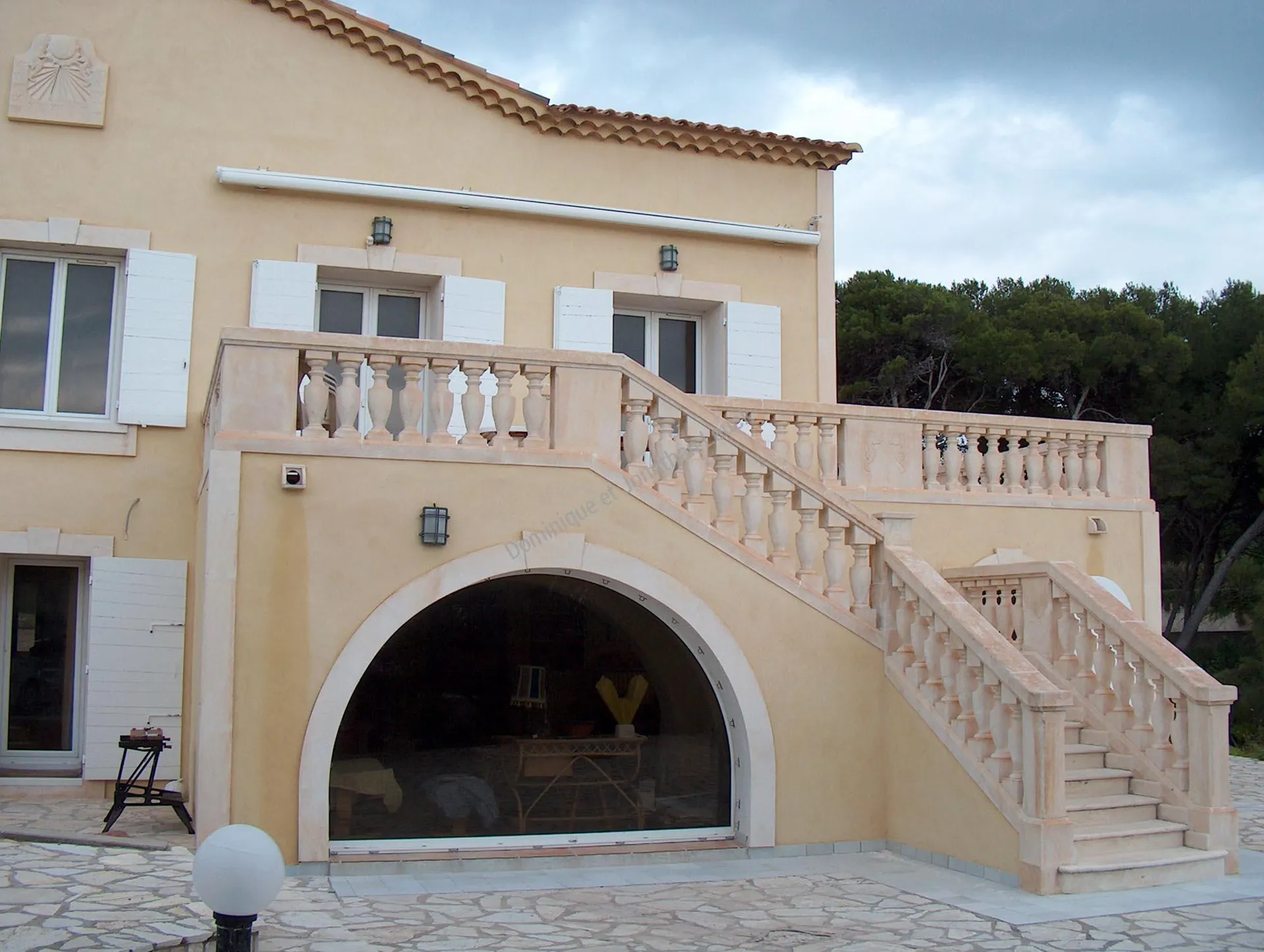 Rénovation d'une Balustrades extérieure d'escalier en pierre blanche d'Estaillades conçu pour faire un garde corps.