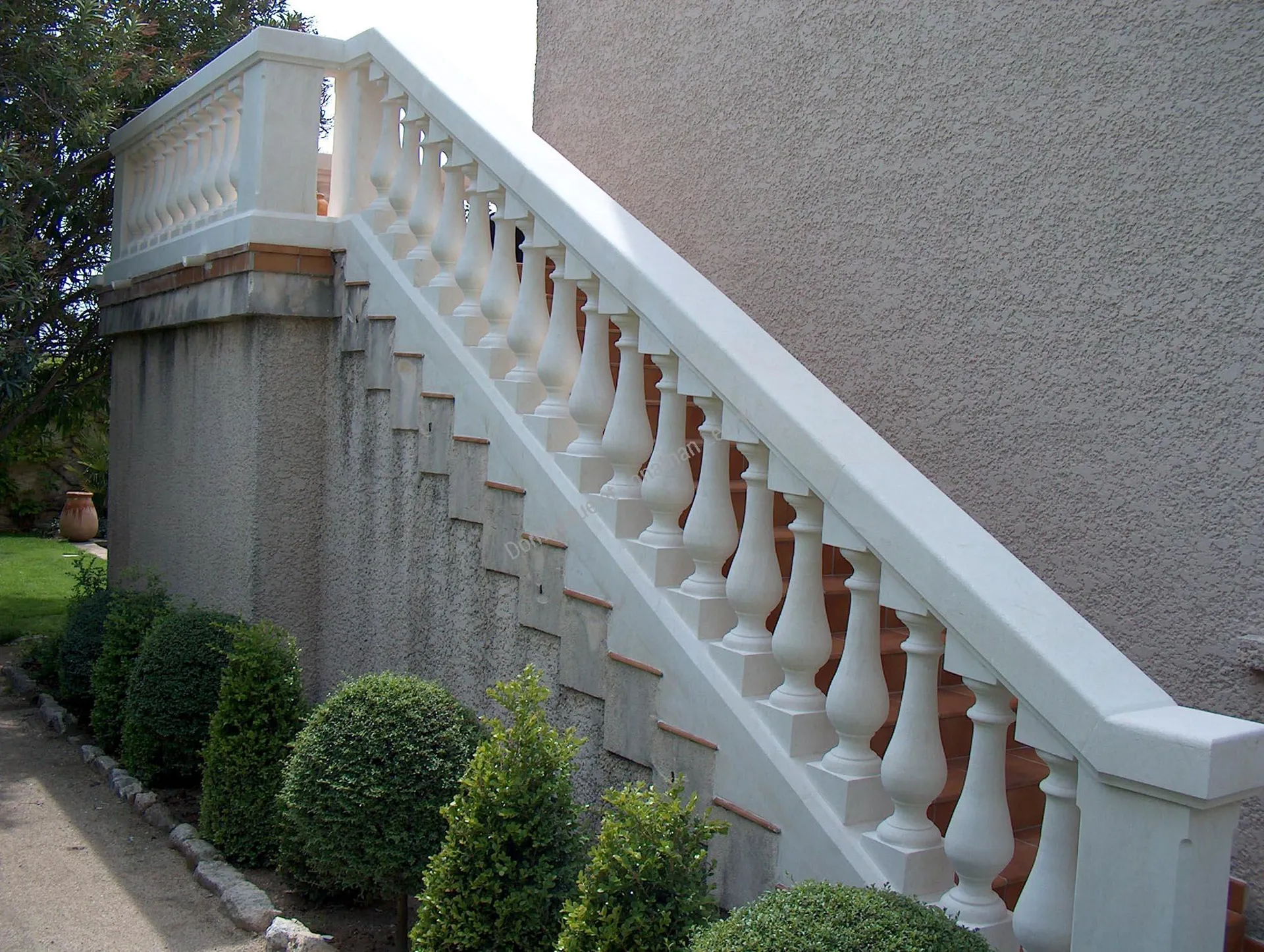 Rénovation d'une Balustrades extérieure d'escalier en pierre blanche d'Estaillades conçu pour faire un garde corps.