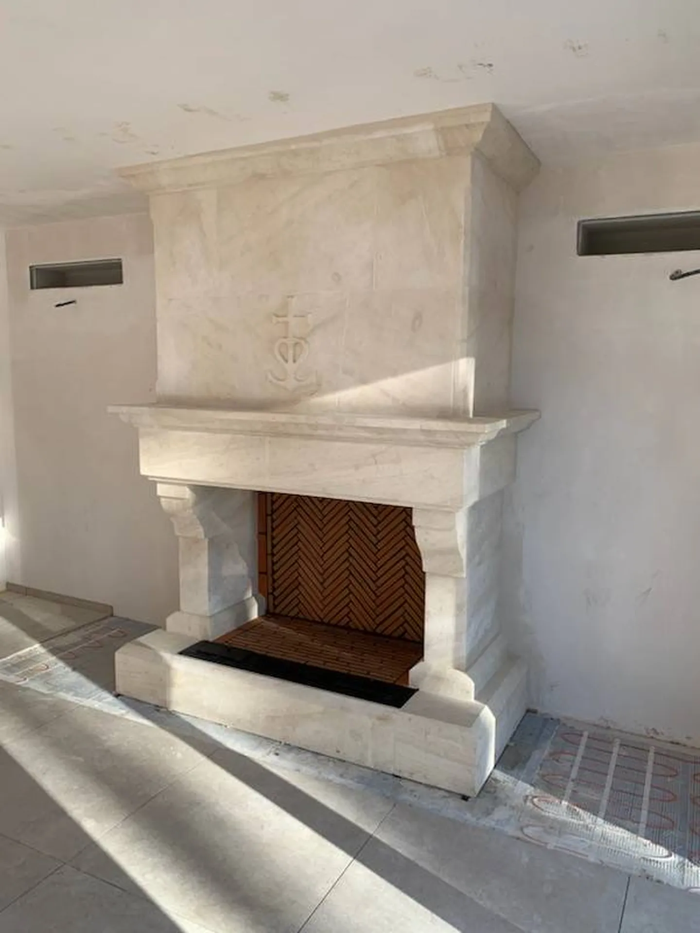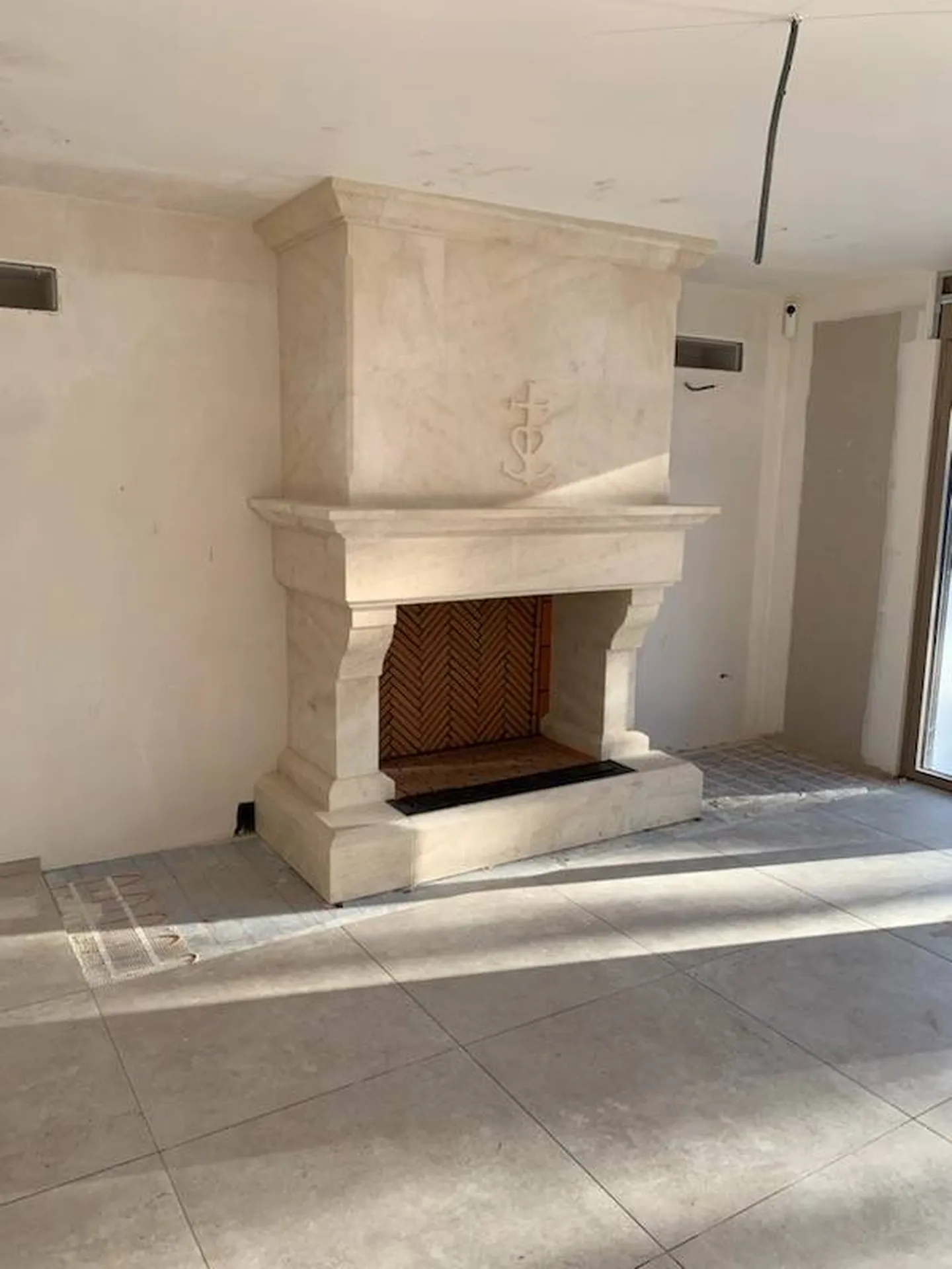 A Fontvieille, proche de Avignon, en région PACA, nous avons réalisé cette belle cheminée avec des briques réfractaires pour passer les soirées d'hiver au coin du feu avec la gravure d'une croix Camarguaise!