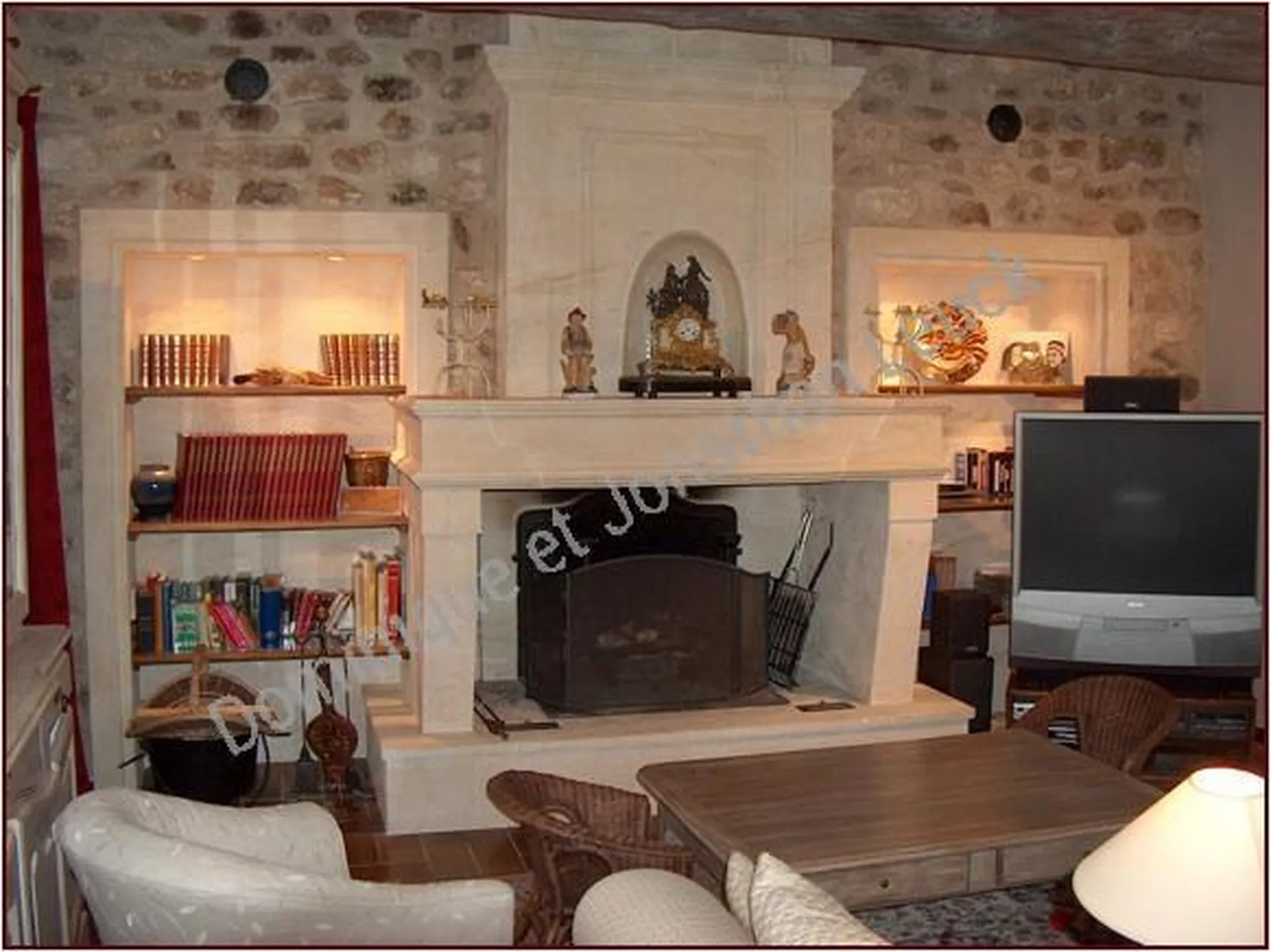 Création d'une cheminée en pierre de Fontvieille avec hotte et aménagements.
