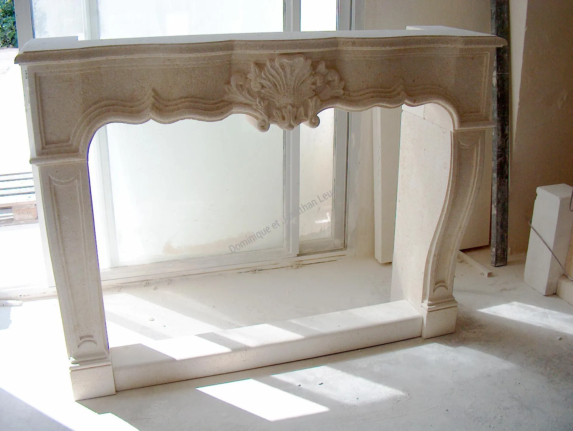 Cheminée en pierre de Beaulieu type Régence sculpté mains.