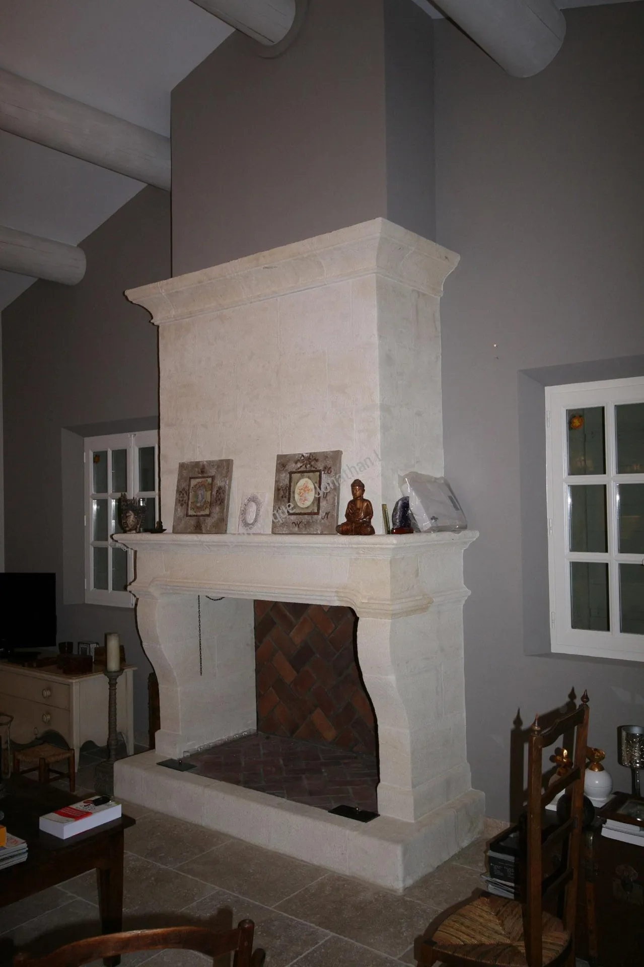 Cheminée et hotte avec corniche en pierre de Fontvieille.