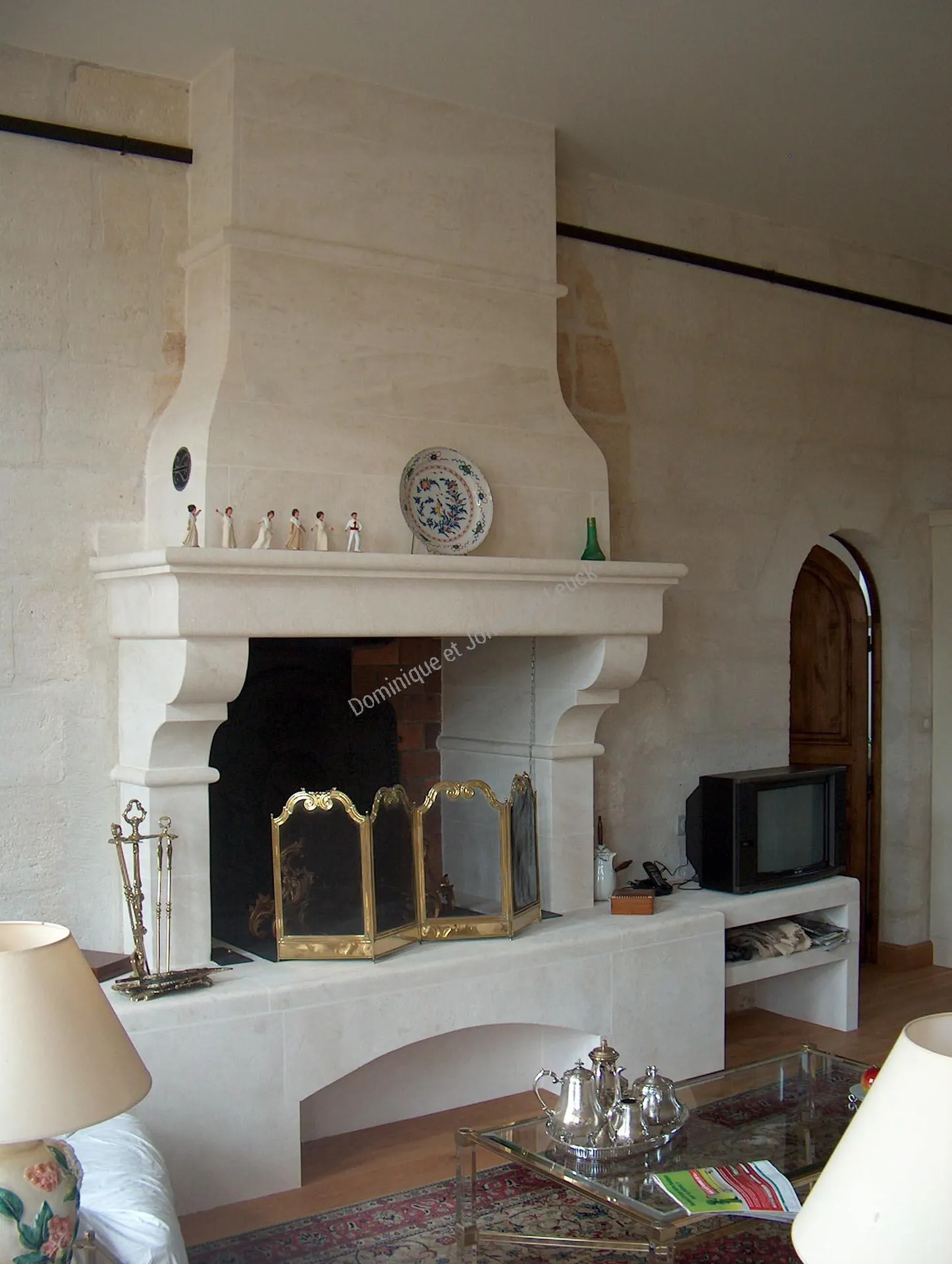 Cheminée et hotte galbée en massif en pierre d'Estaillades.