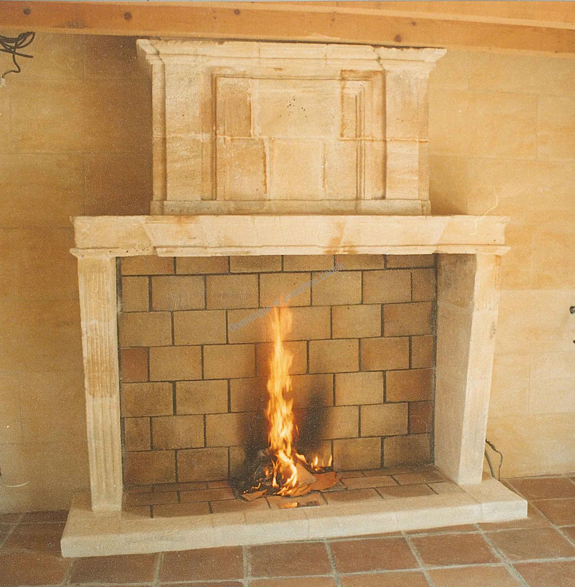 Cheminée type Camargue et trumeau en pierre de Fontvieille, patine main.