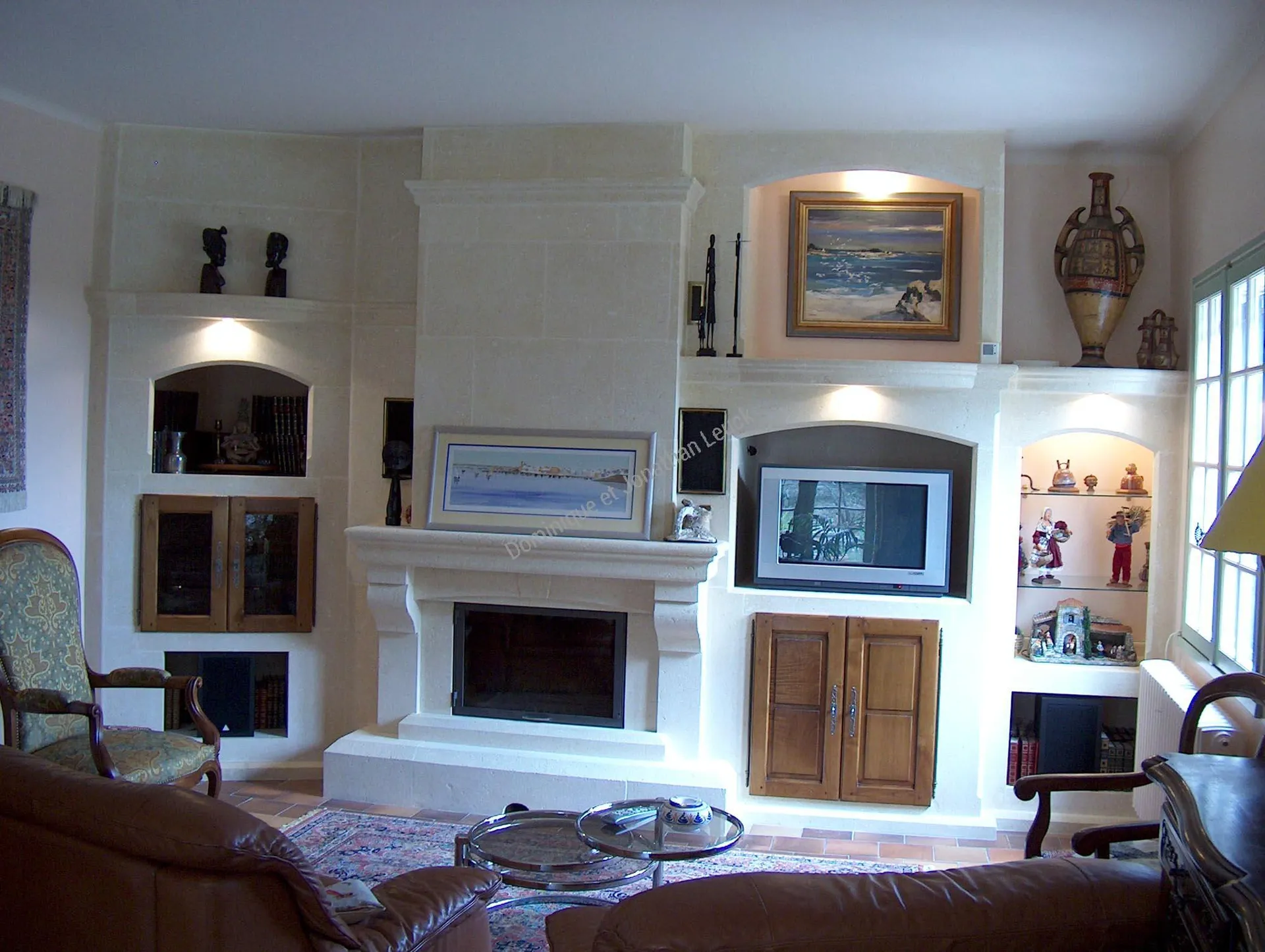 Cheminée, hotte et aménagements en pierre de Beaulieu, façades bois Meubles Durand St Remy.