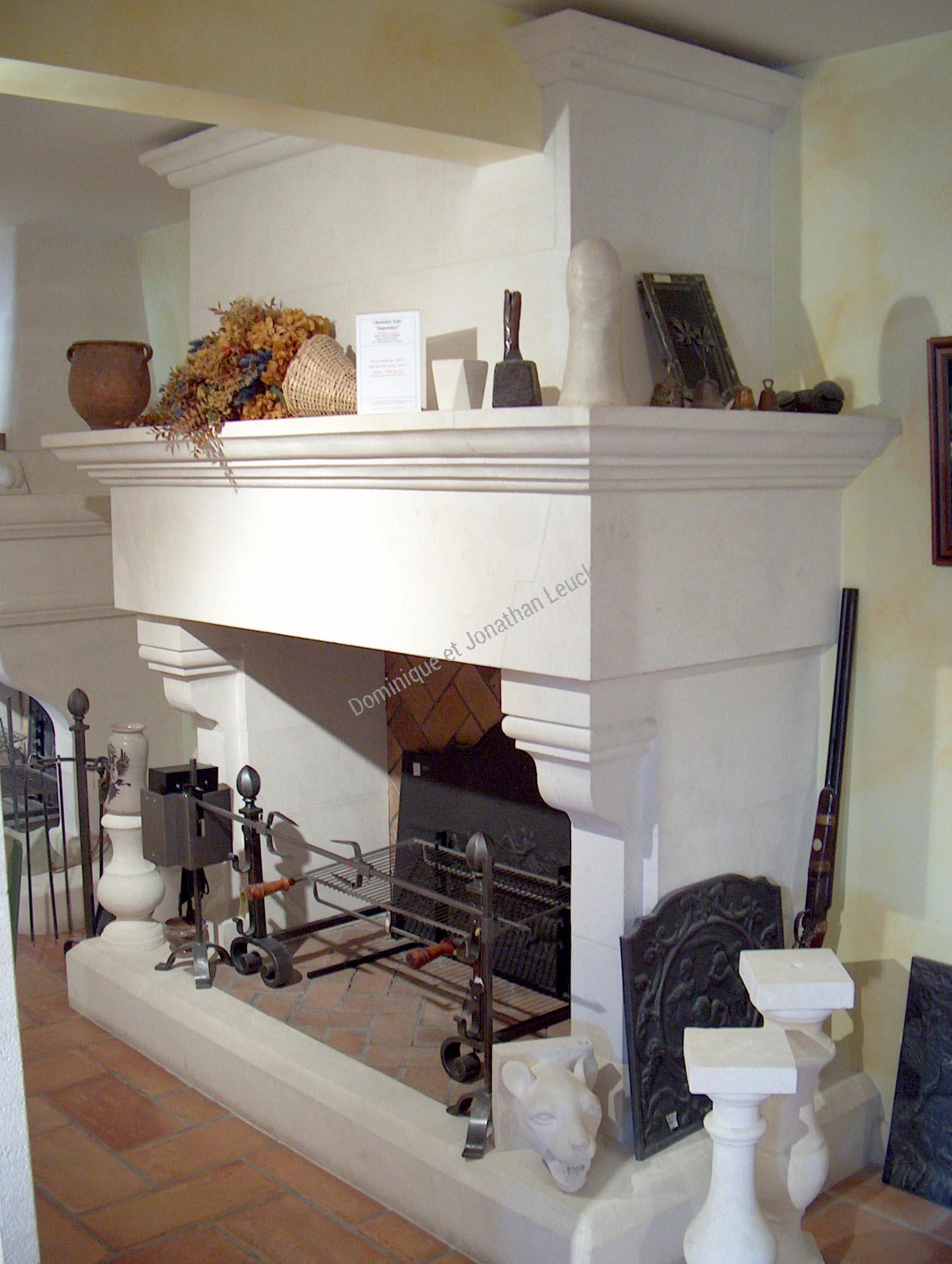 Cheminée et hotte avec corniche type Impérator en pierre d'Estaillades.