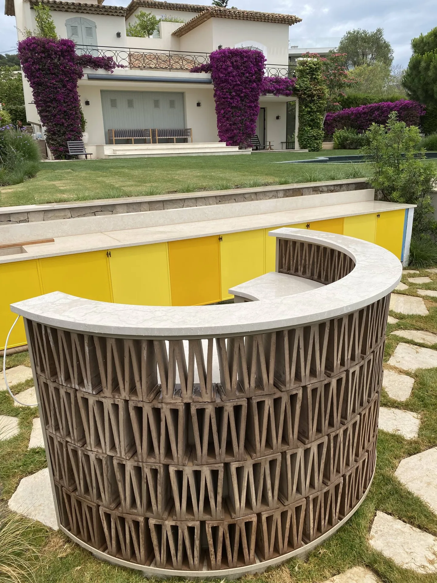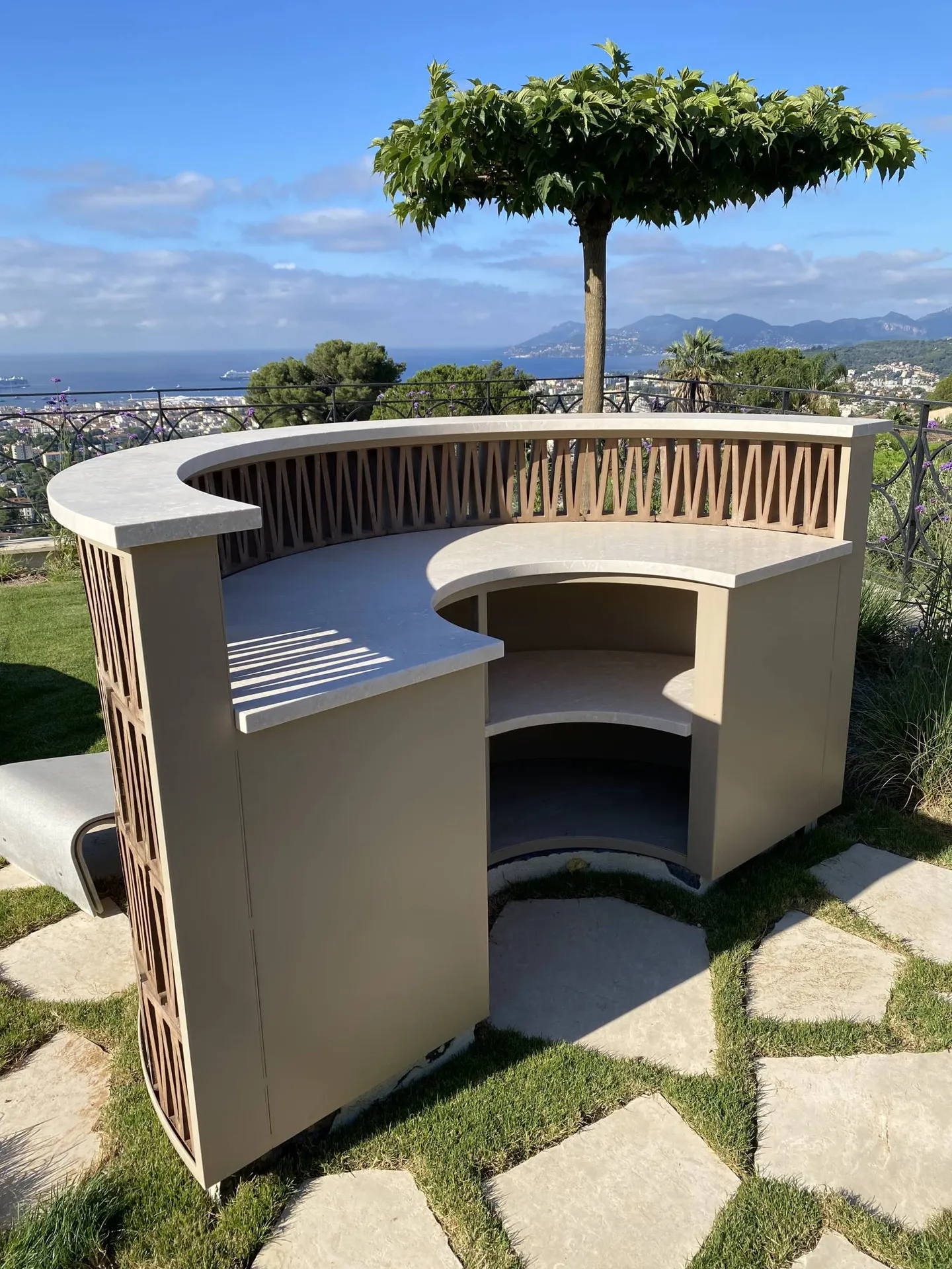 Qui n'aurait pas envie d'un joli comptoir original et sur-mesure dans son jardin, qui plus est dans un beau matériau?