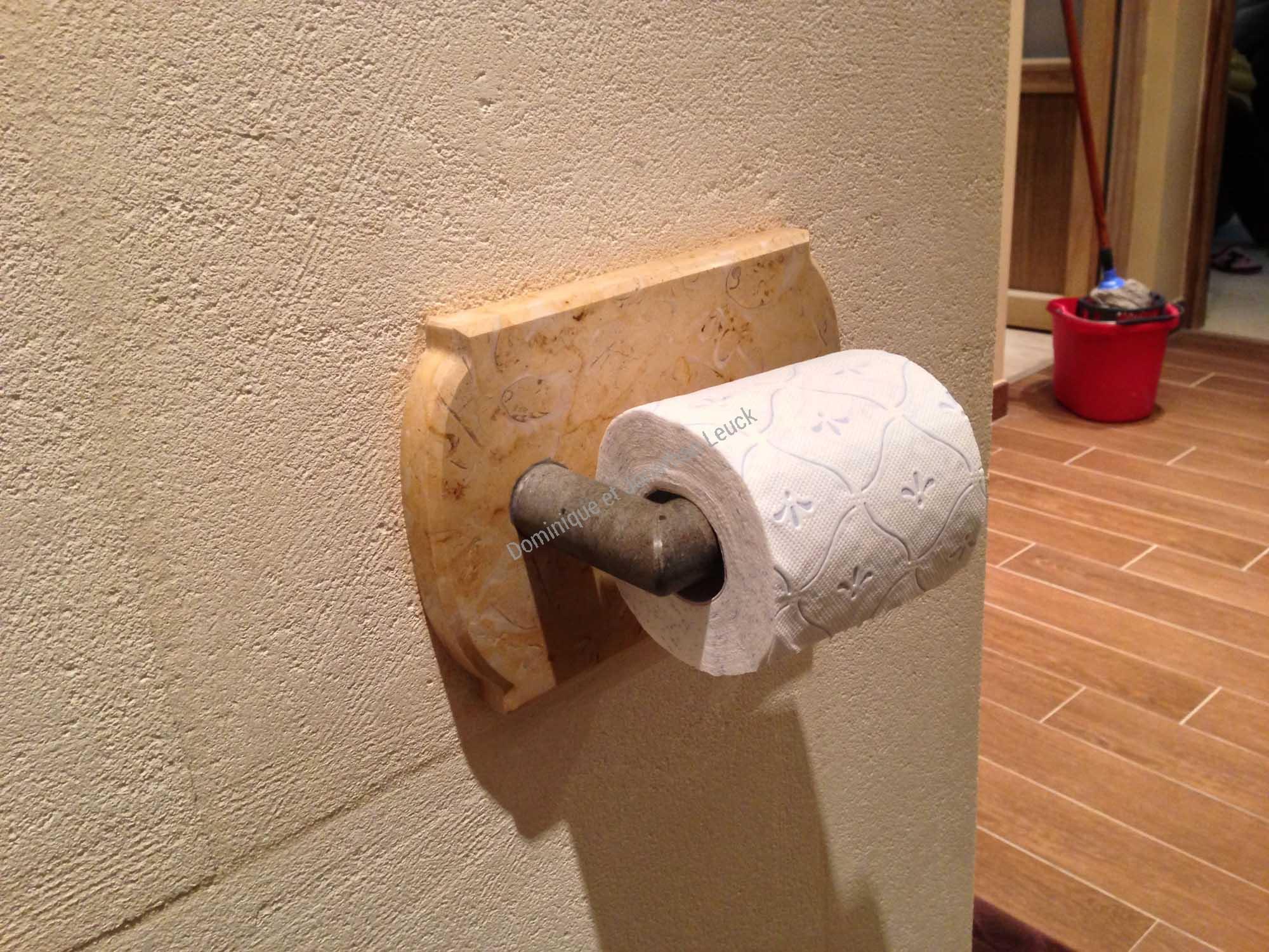 Création unique d'un dérouleur papier WC en marbre tpe Jaune pèrle et pierre dure type Grey Storm.