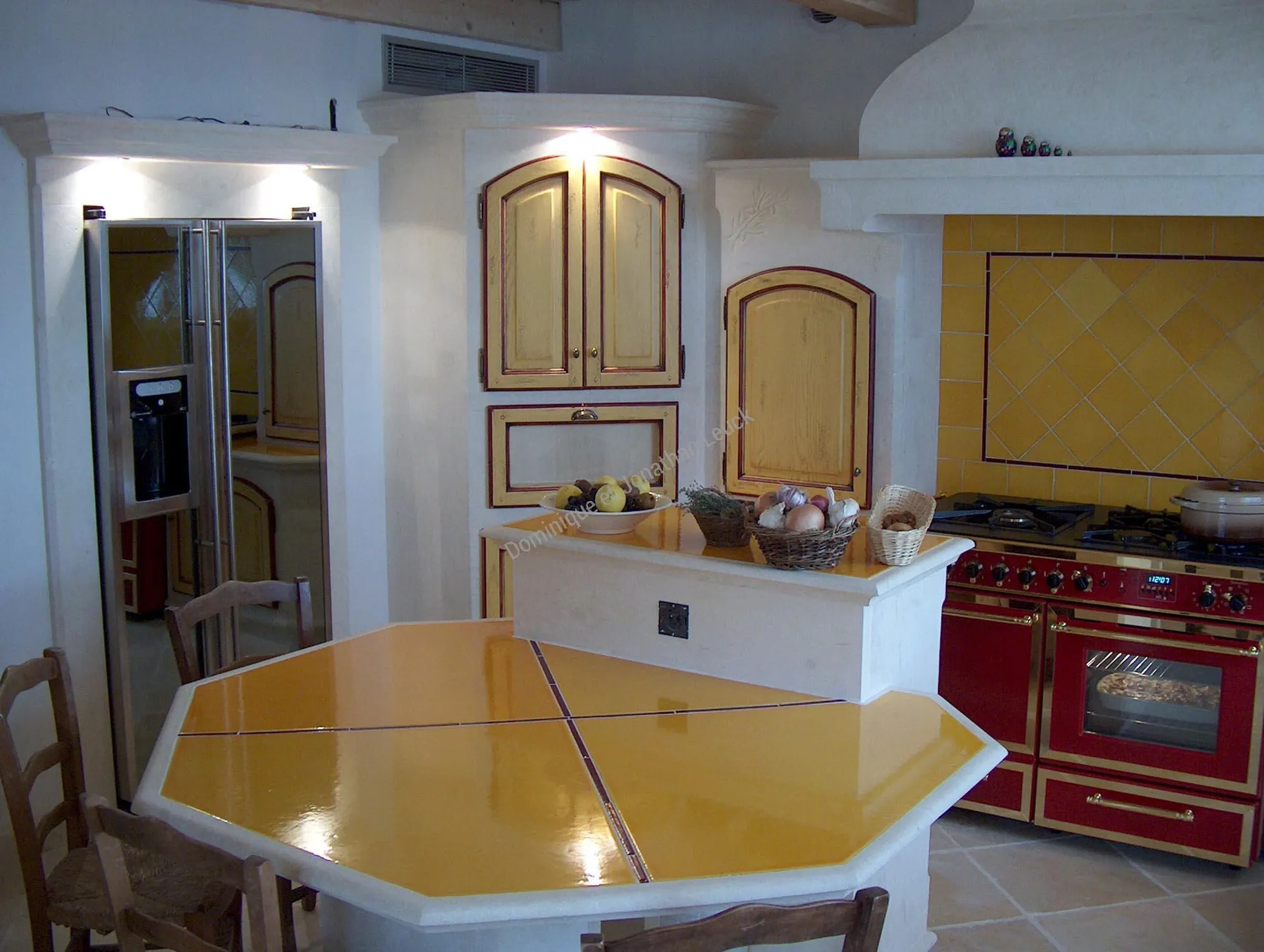 Cuisine sur-mesure, bâti en pierre blanche d'Estaillades et plans en pierre, marbre, granit ou en lave émaillée.