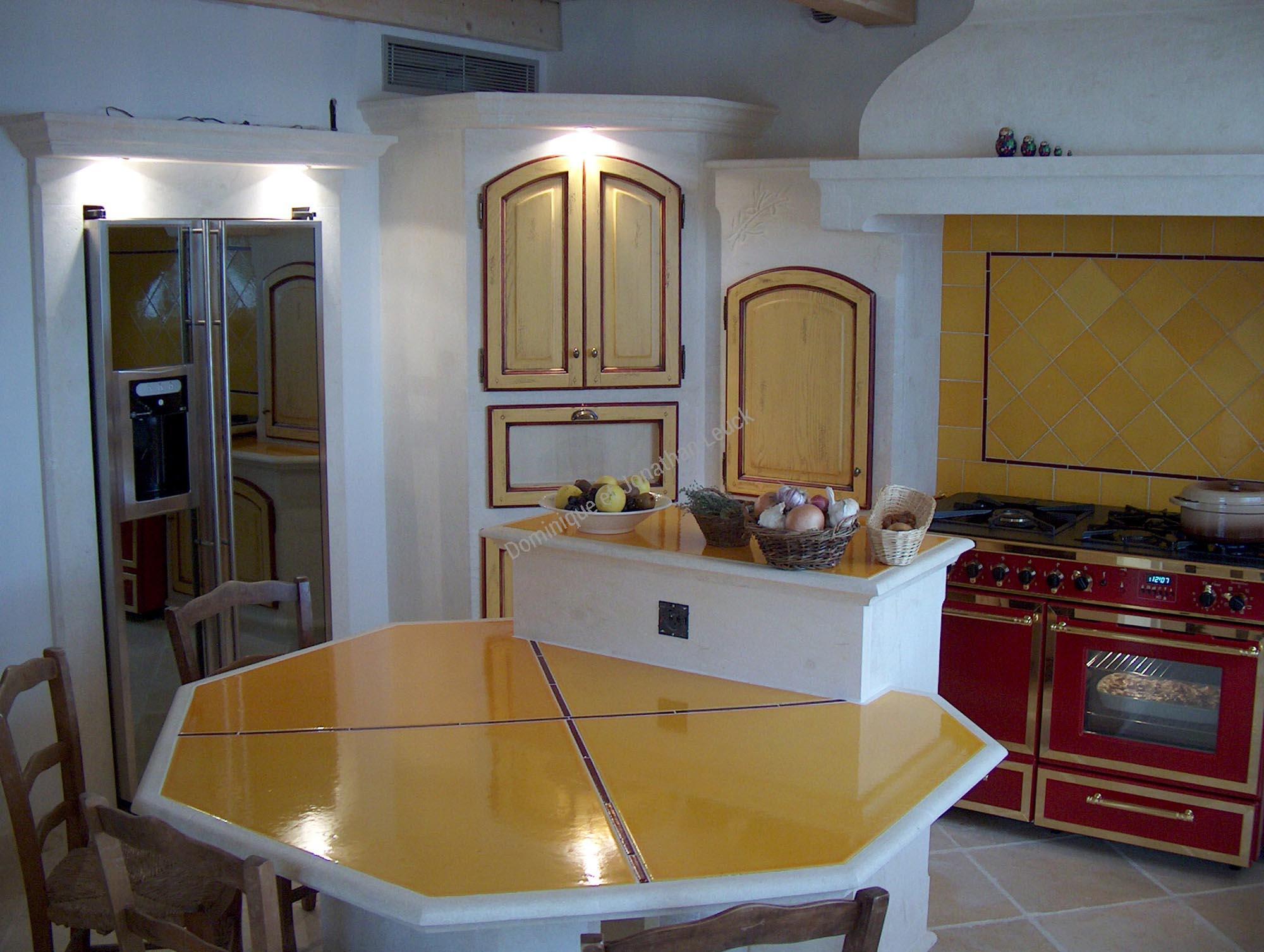 Cuisine sur-mesure, bâti en pierre blanche d'Estaillades et plans en pierre, marbre, granit ou en lave émaillée.
