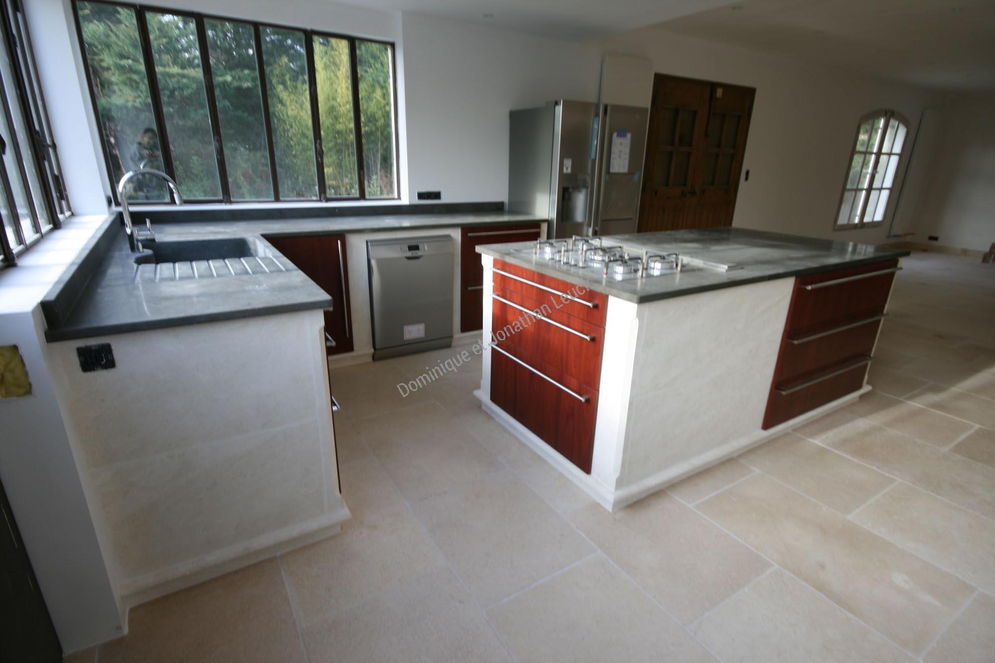 Cuisine sur-mesure, bâti en pierre blanche d'Estaillades et plans en pierre, marbre, granit ou en lave émaillée.