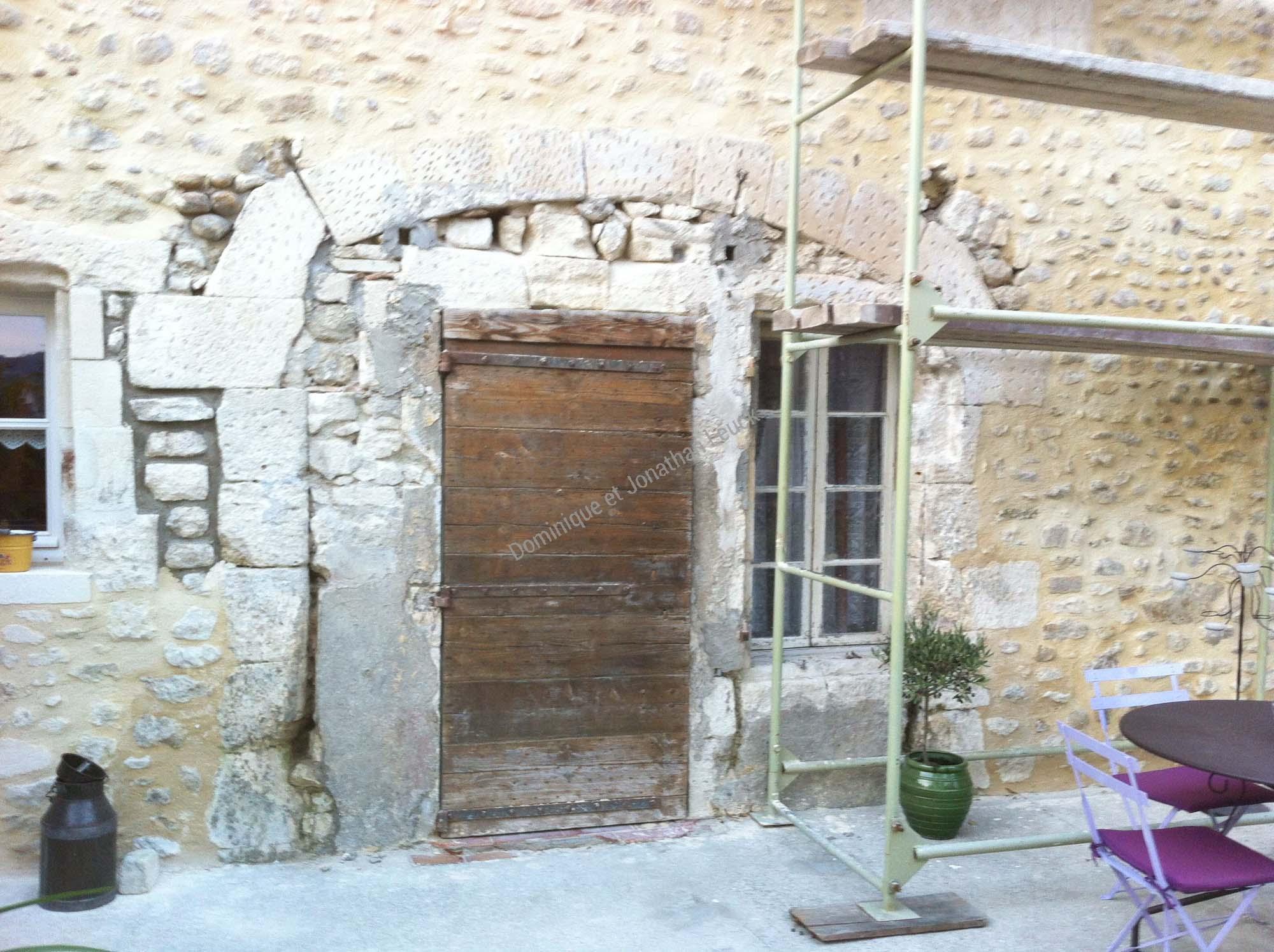 Création d'encadrements et rénovation des cintres en pierre d'Estaillades (avant et après).