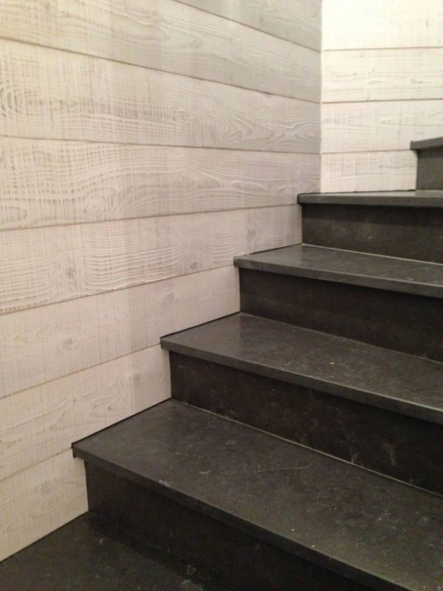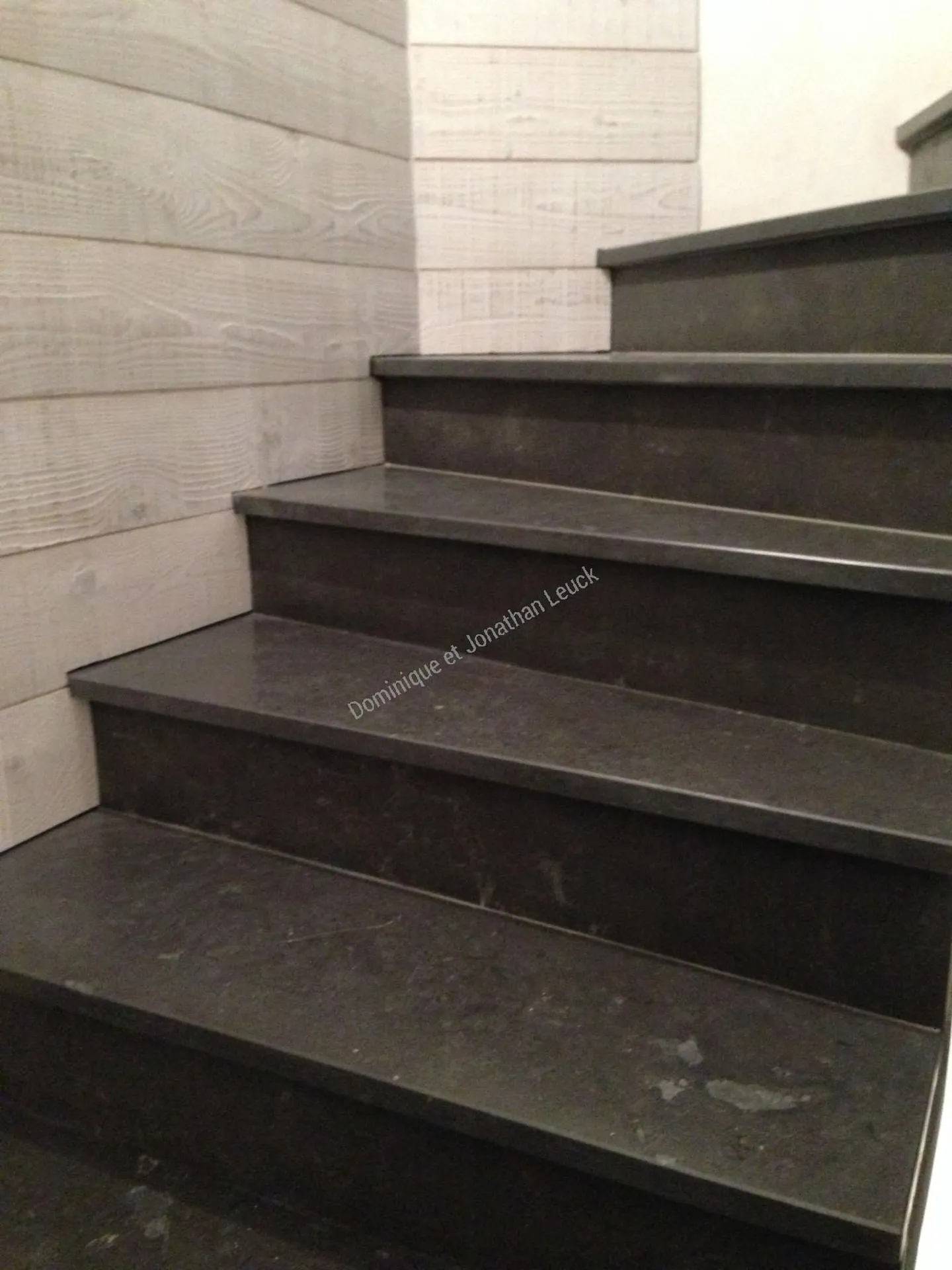 Escalier et palier à l'étage en pierre dure type Grey Storm , Marches et contremarches.