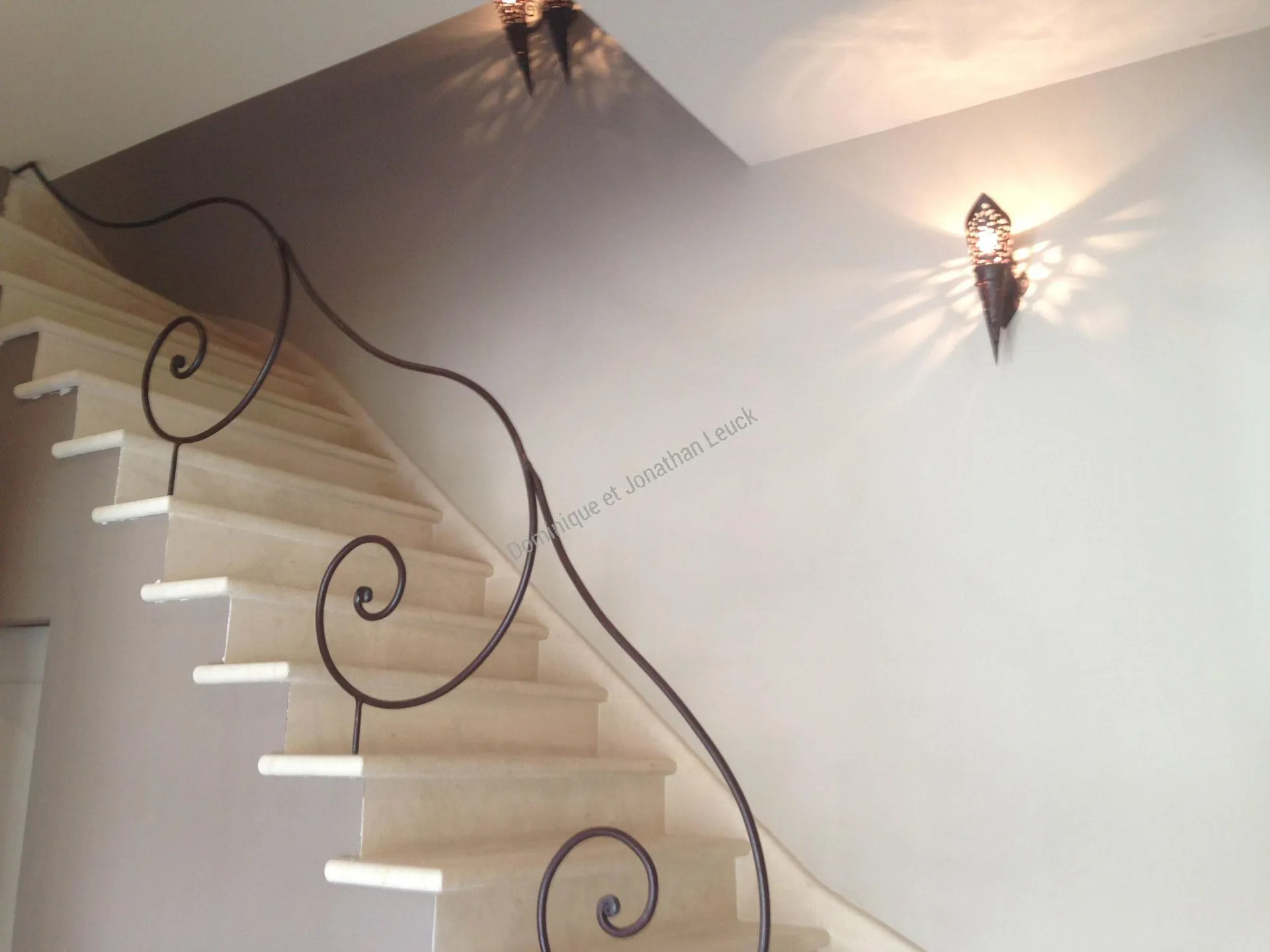 Escalier en placage, marches et contremarches réalisé en pierre d'Estaillades.