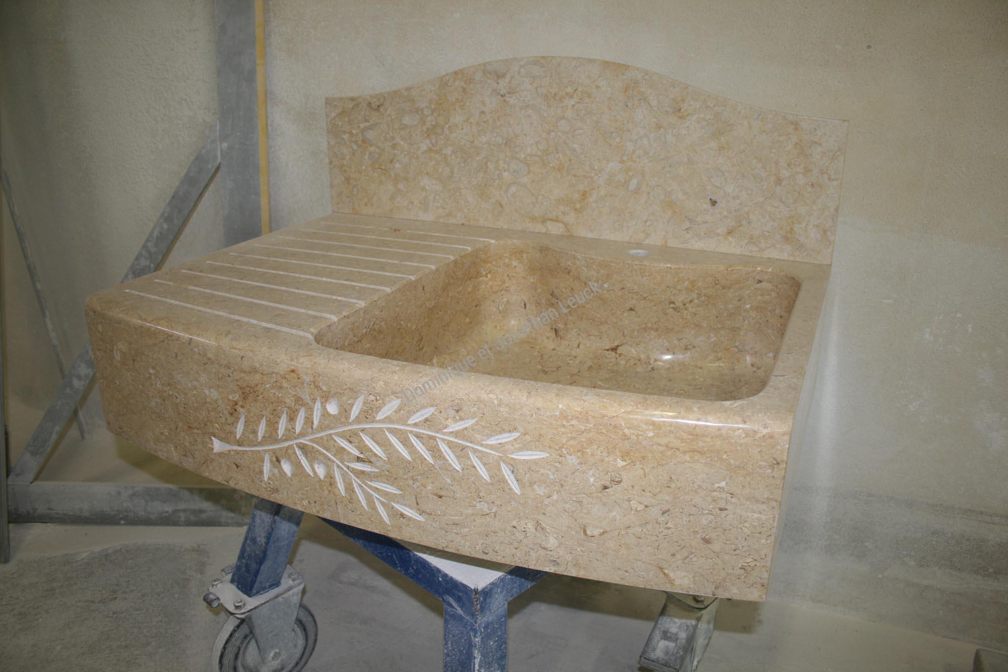Evier en marbre 1 cuve 1 égouttoir en marbre type Jaune pèrle.
