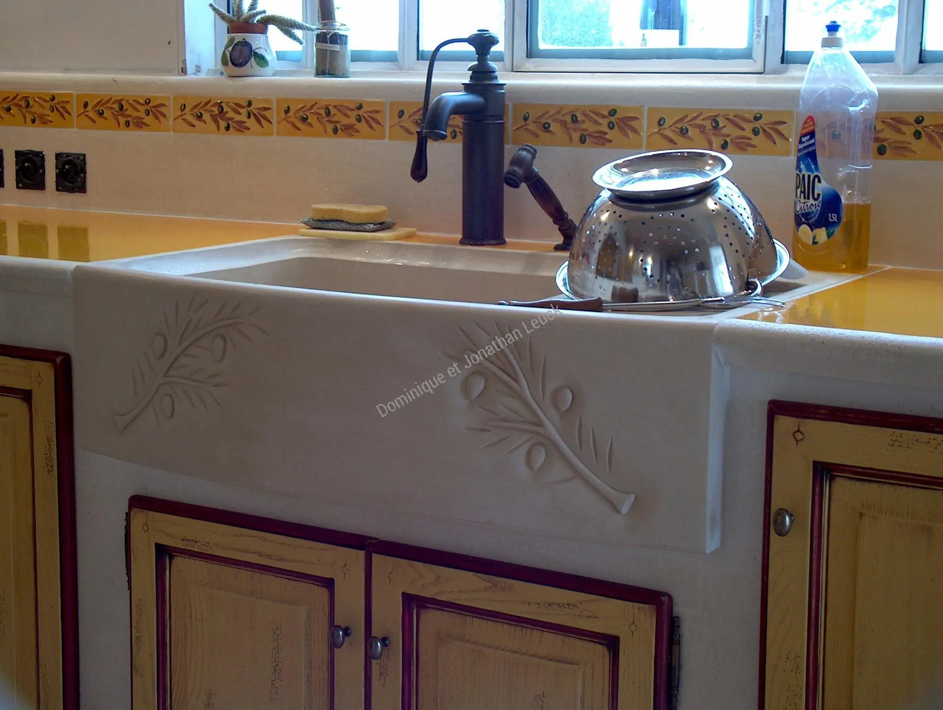 Réalisation d'un évier massif en pierre dure de Moca Crème Portugal sur Valence à proximité de Lyon.