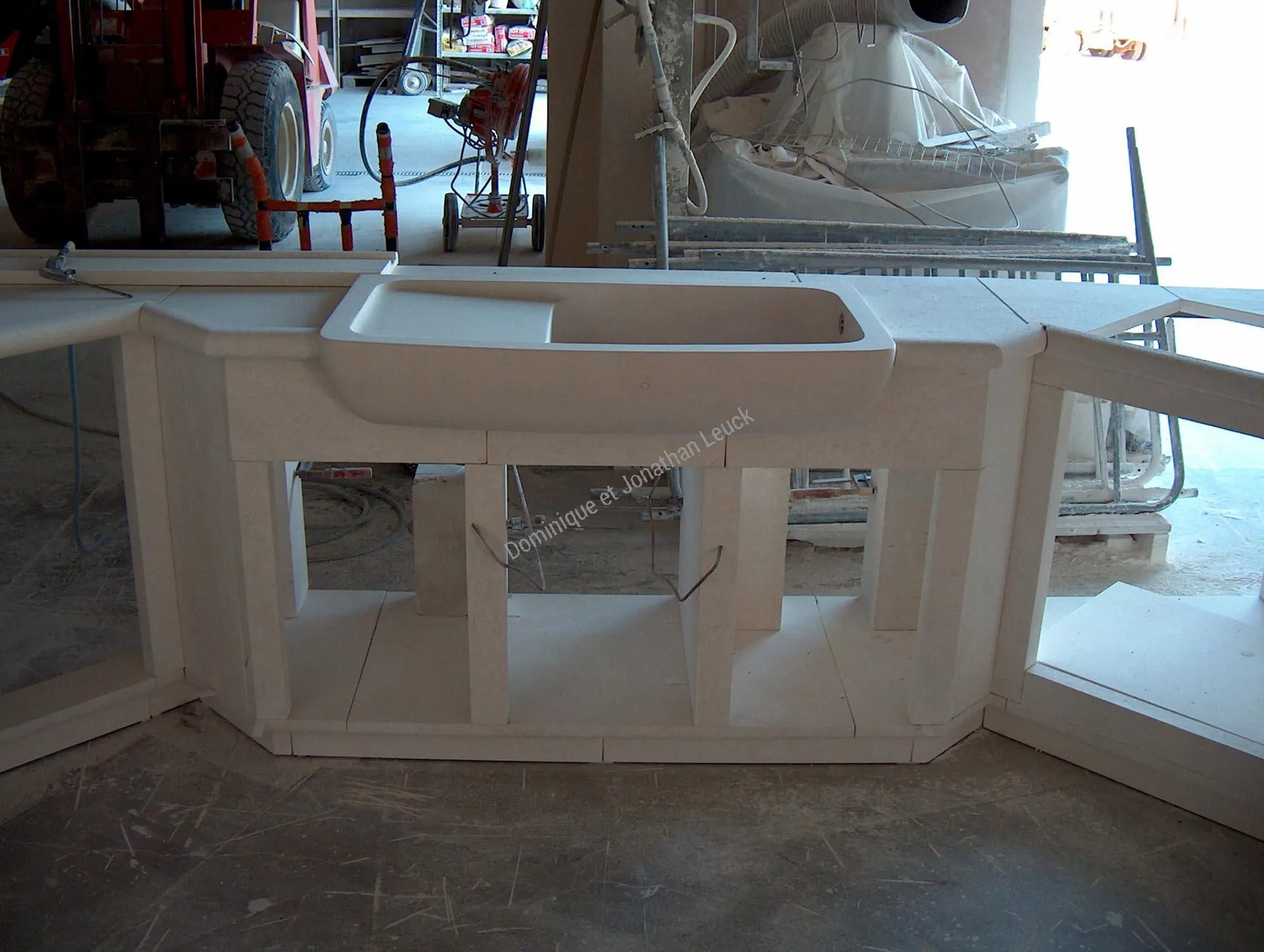 Réalisation d'évier massif en pierre de Tervoux sur-mesure pour la Suisse.