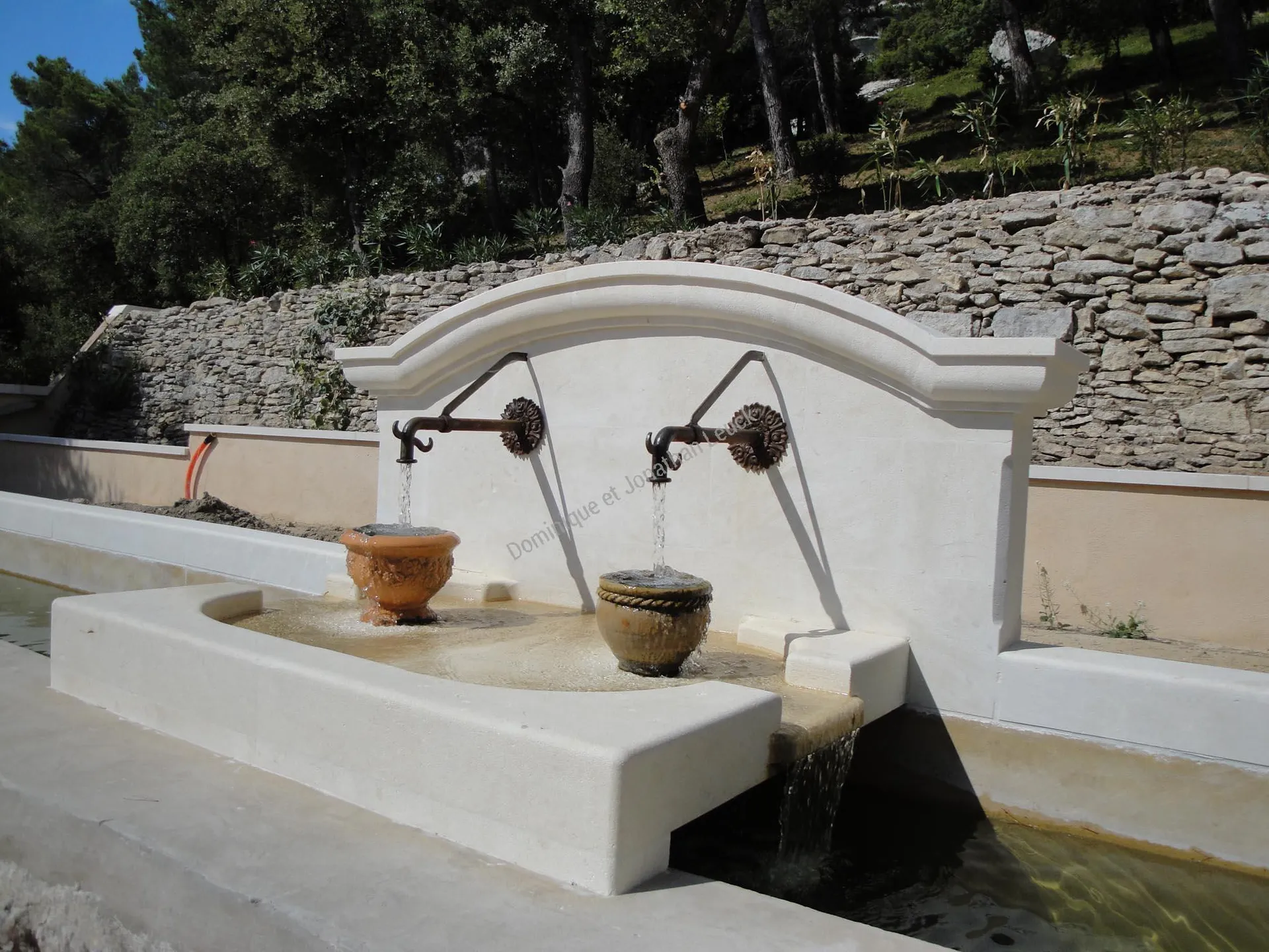 Fontaine à sources et à débordements en pierre d'Estaillades.