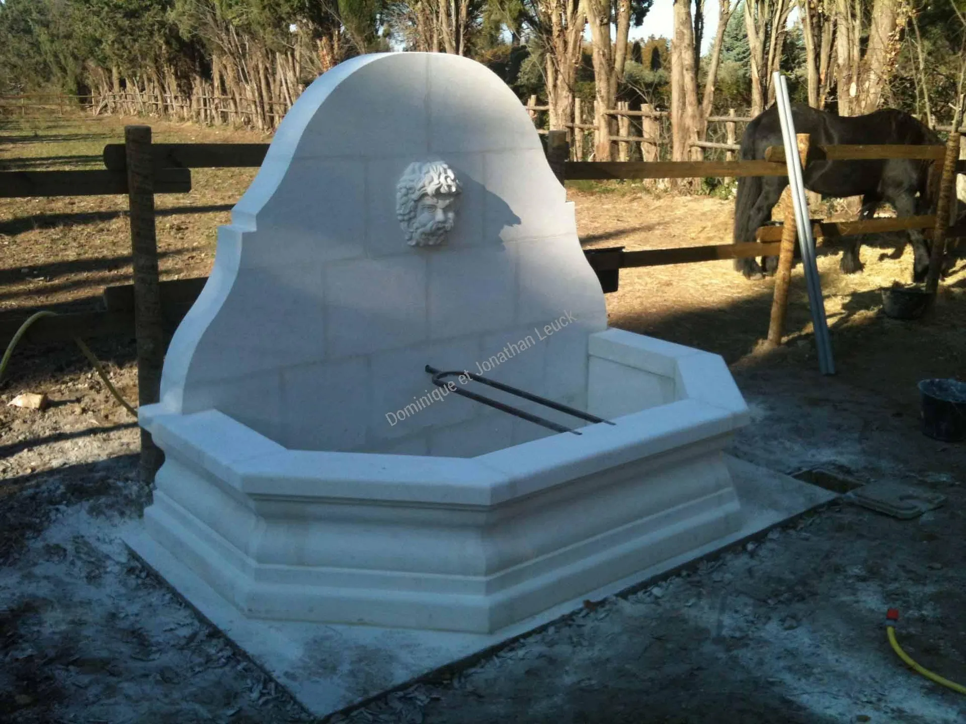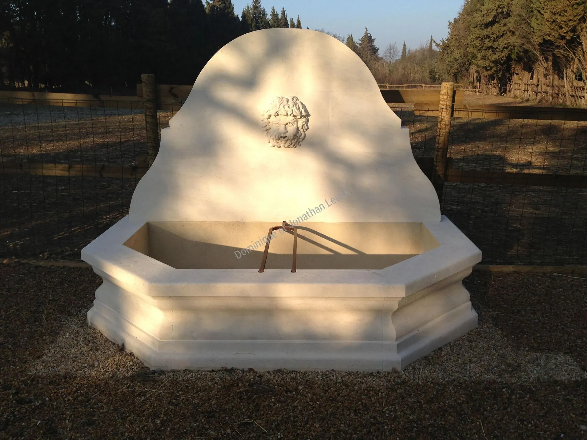 Fronton et bassin en pierre d'Estaillades.