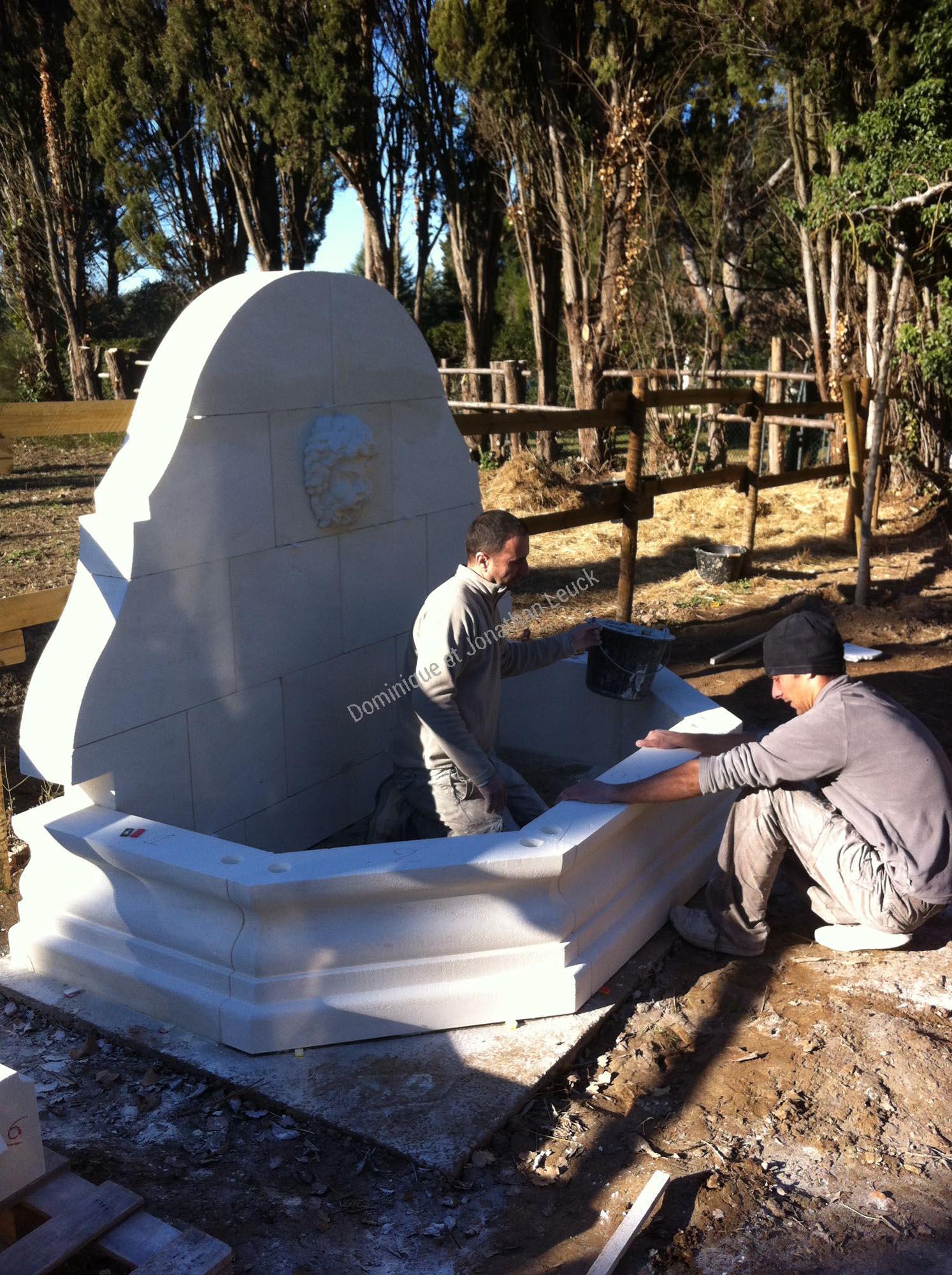 Fronton et bassin en pierre d'Estaillades.