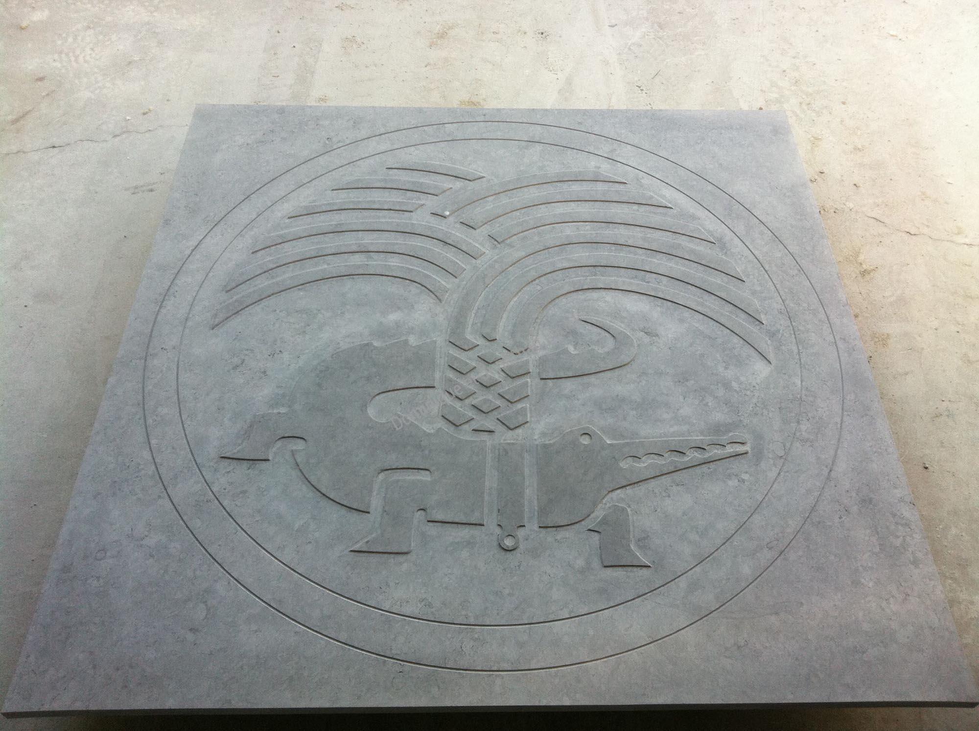 Gravures et bas-reliefs en pierre d'Estaillades ou Richemont bleu en marbre ou granit sur-mesure.
