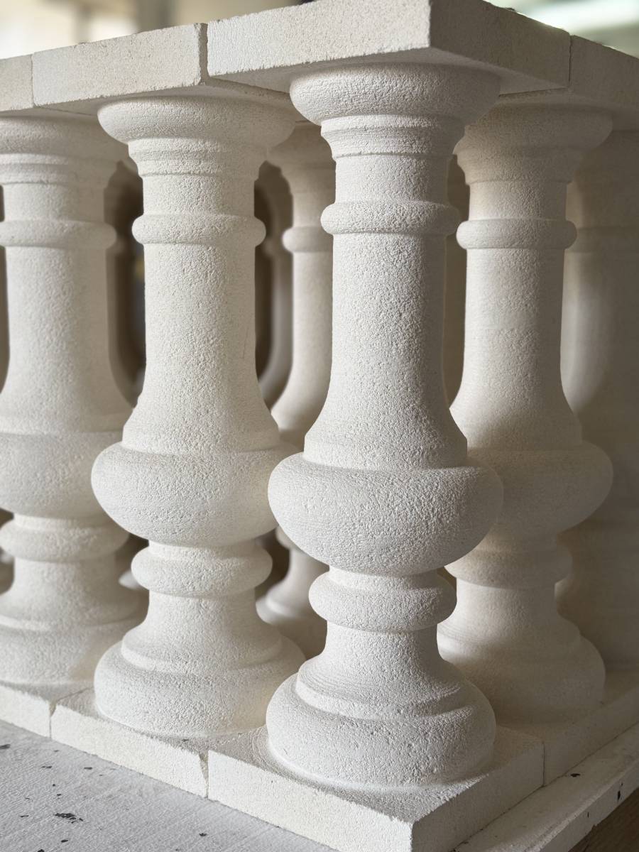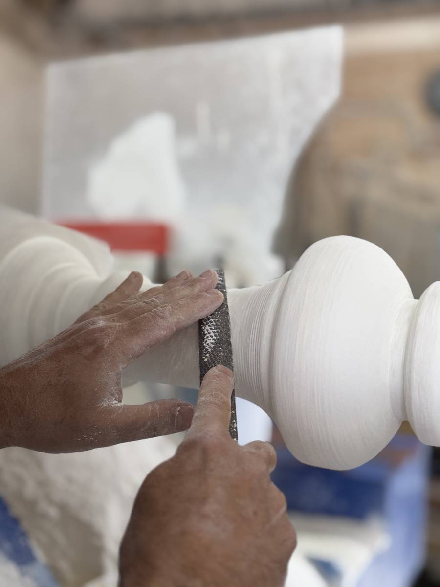 - Finitions manuelles sur des balustres en Pierre d'Estaillade avec François.