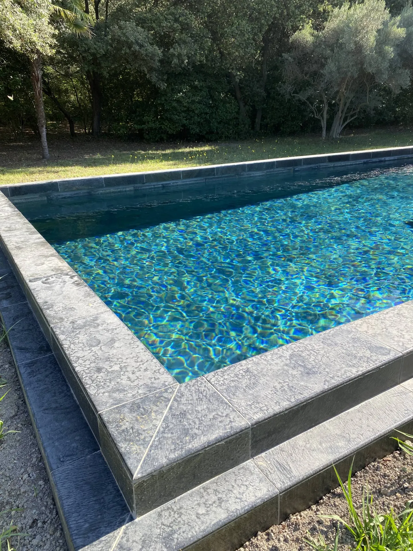 margelles de piscine c'est l'assurance d'un matériau de qualité, résistant, original et tendance. La particularité de cette pierre c'est sa teinte nacrée avec des touches harmonieuses de vert lorsqu'elle est mouillée.