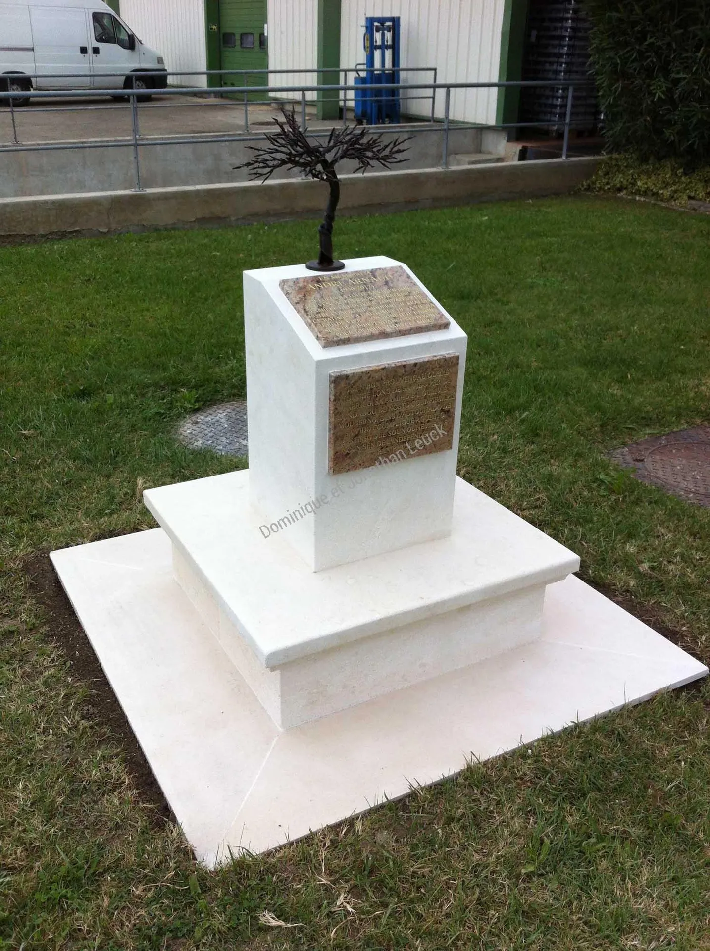 Mémorial du souvenir en pierre d'Estaillades sur le site des olives Arnaud sur Tarascon.