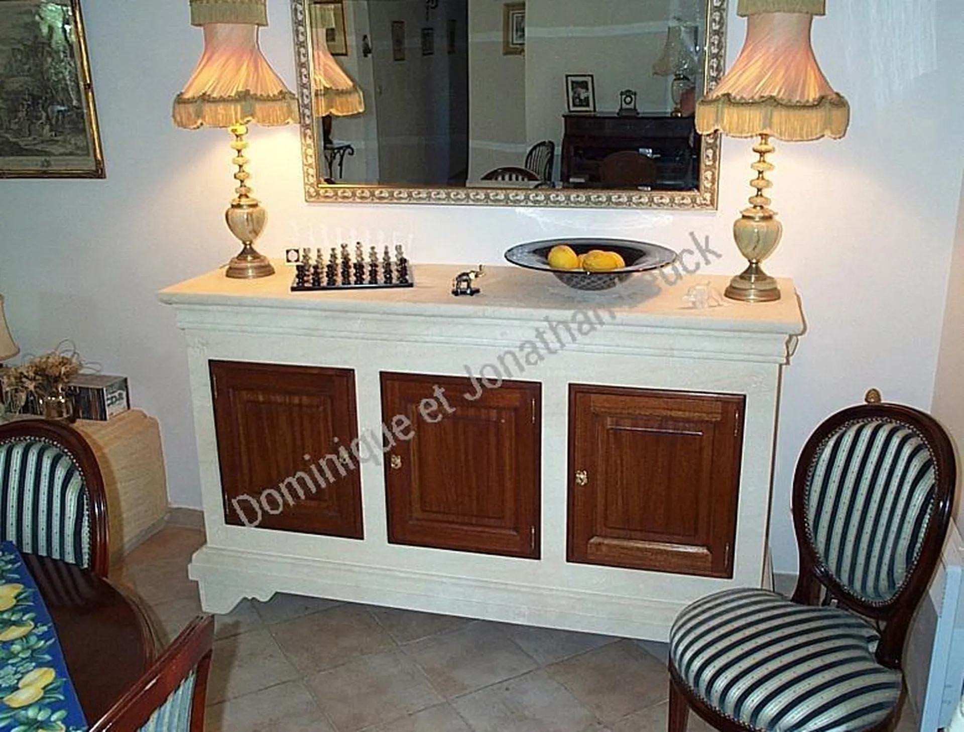 Création d'un meuble de style en pierre d'Estaillades avec façades en noyer.