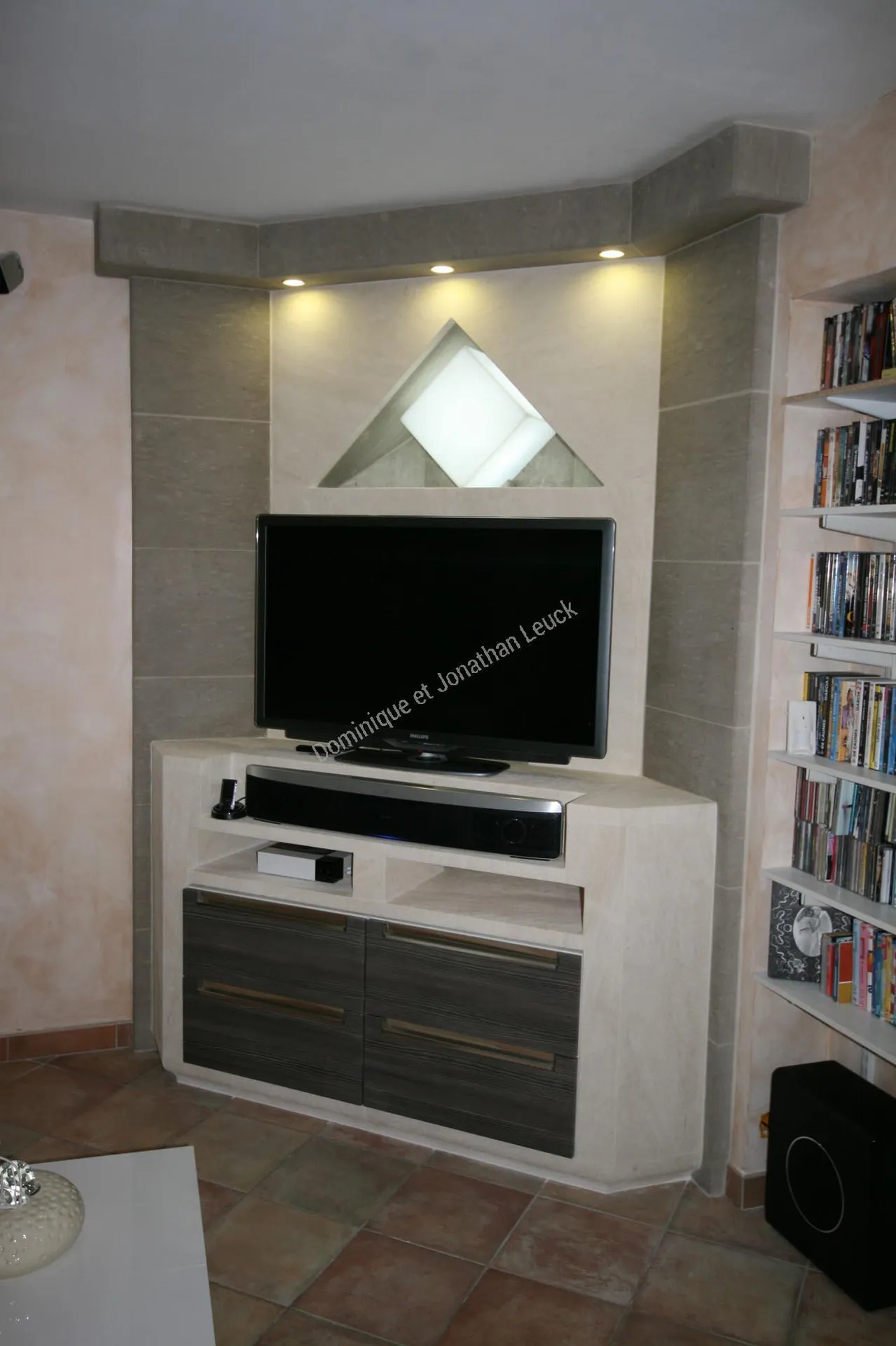 Meuble T.V. en pierre d'Estaillades et de Richemont bleu, région de Poitier.