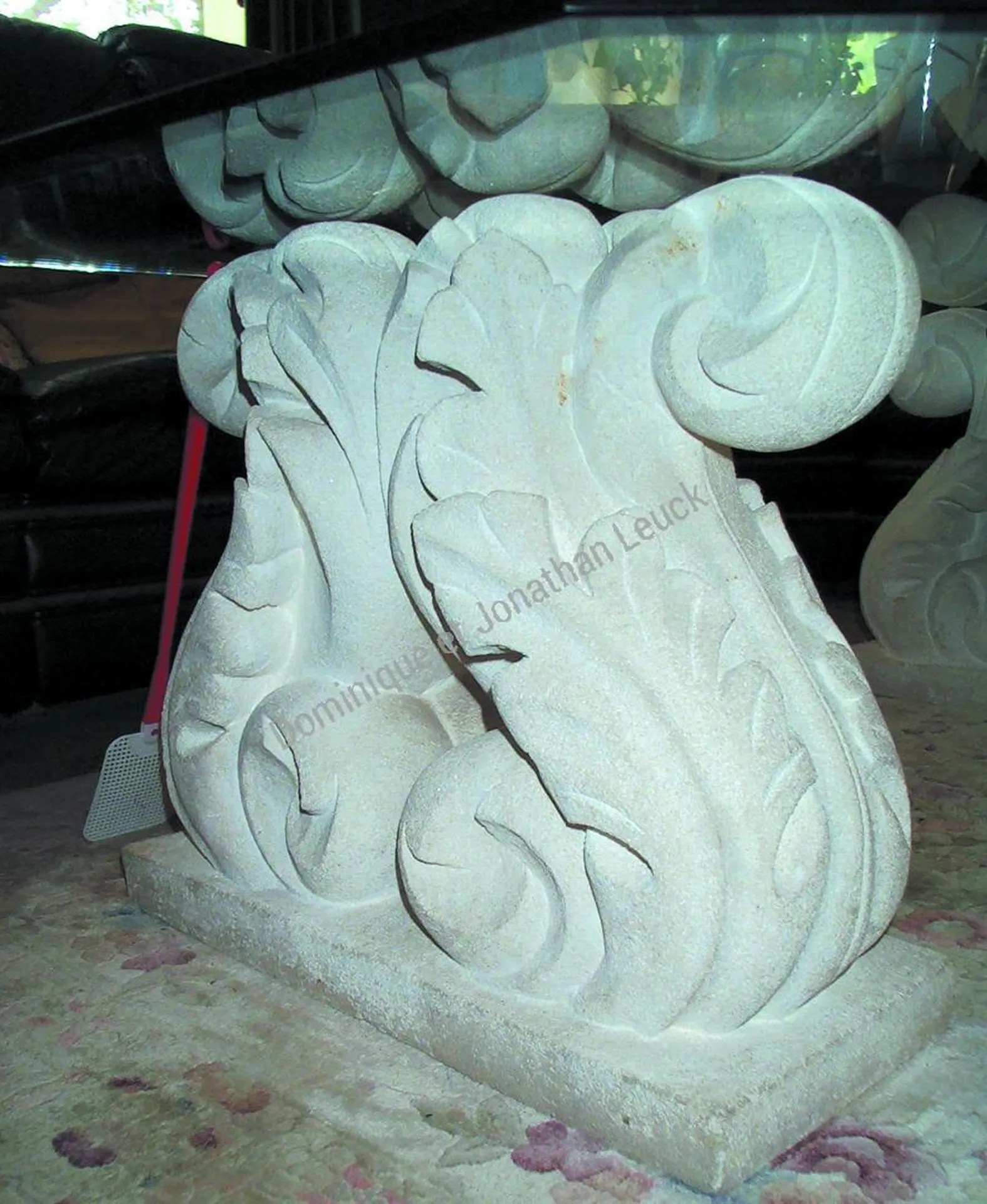 Création de pieds de table, sculpture type feuilles d'acanthes.