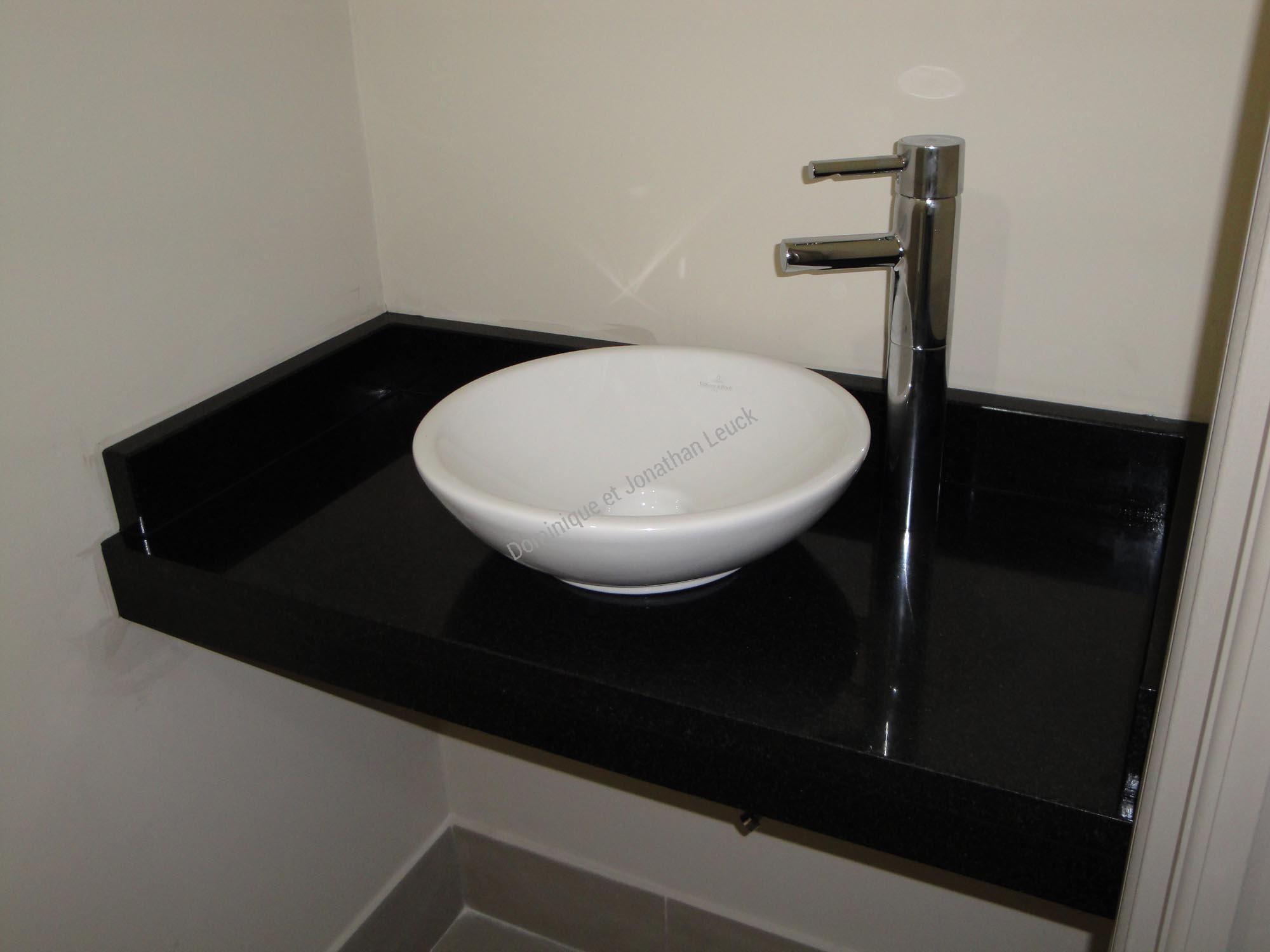 Plan en granit type noir Zimbabwé et vasque en marbre blanc type Tassos.