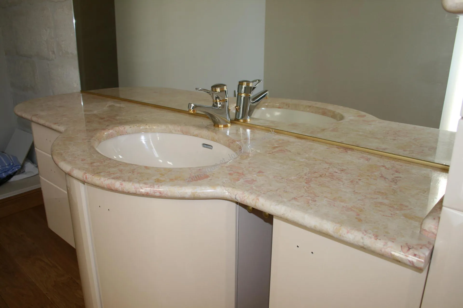 Plan vasque de salle de bains en marbre rose.