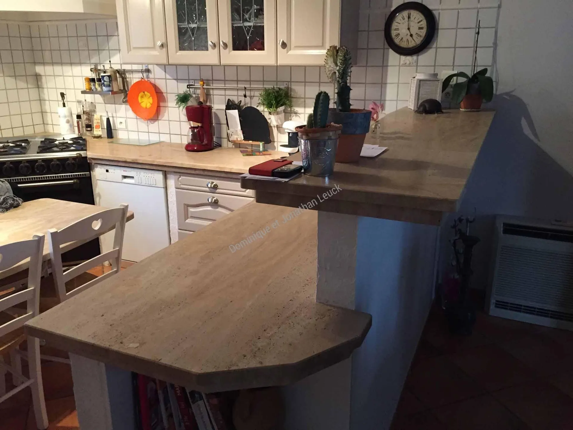 Création d'un plan de travail sur-mesure en pierre de Bourgogne (Beauval) finition adoucie sur Tarascon.