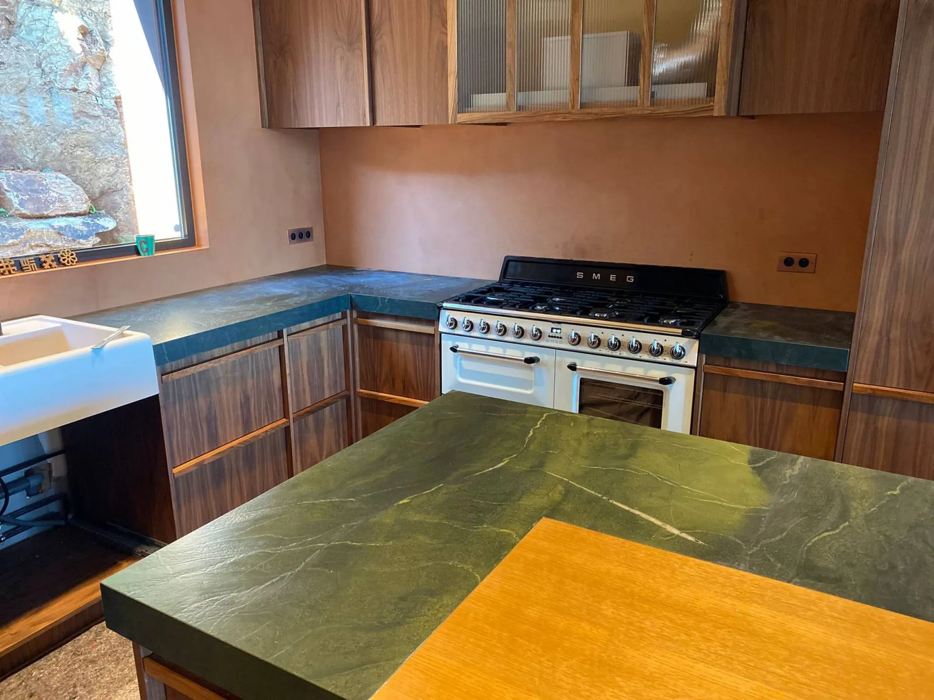 Quartzite Avocatus. En collaboration avec la menuiserie Fouques, nous avons associé nos savoir-faire pour créer un îlot central orignal associant le Quartzite et le bois.