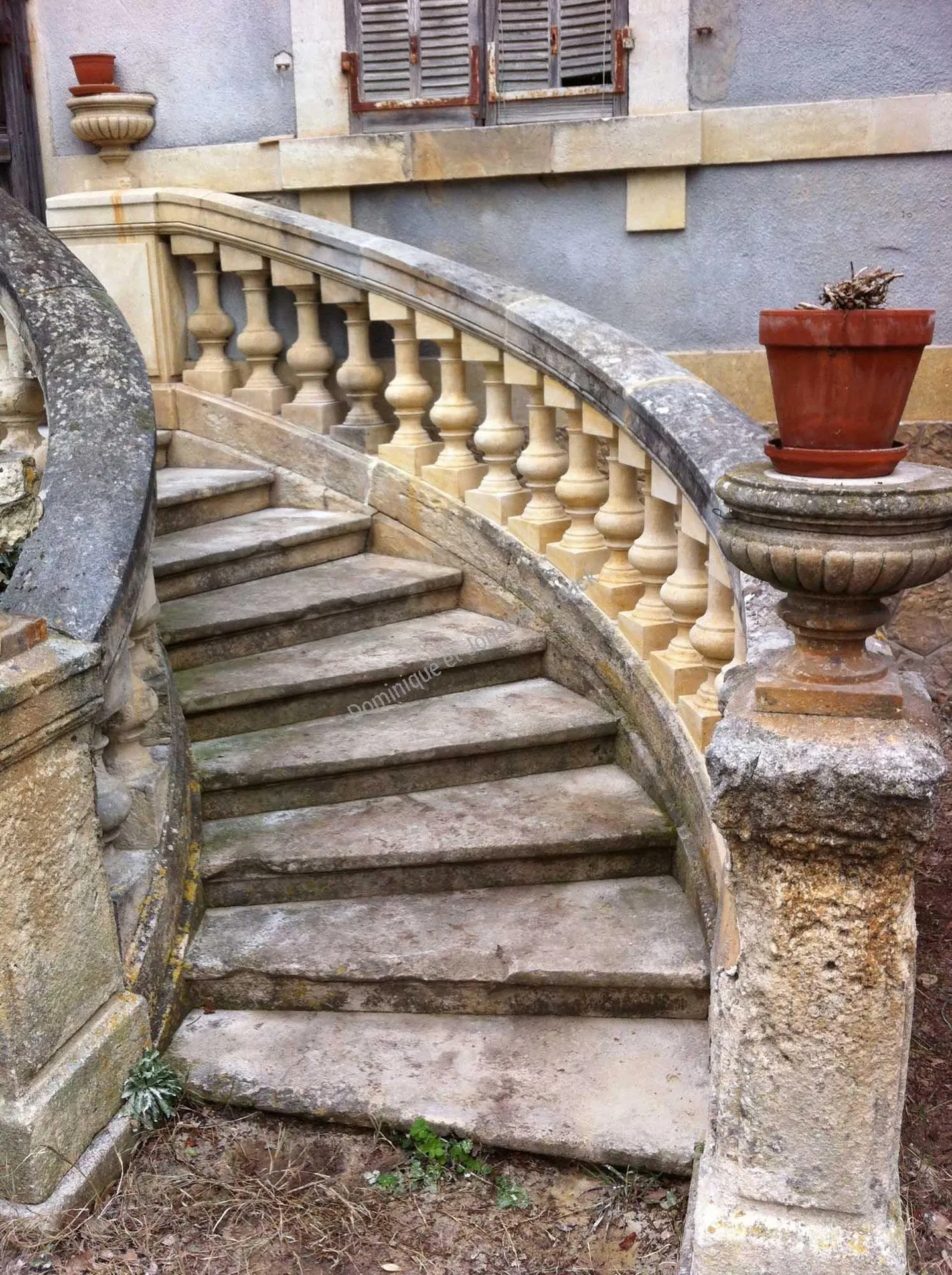 Rénovation d'une Balustrades extérieure d'escalier en pierre blanche d'Estaillades conçu pour faire un garde corps.