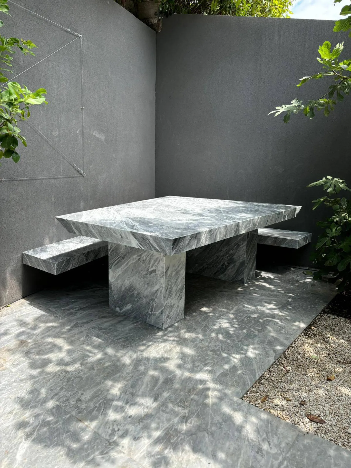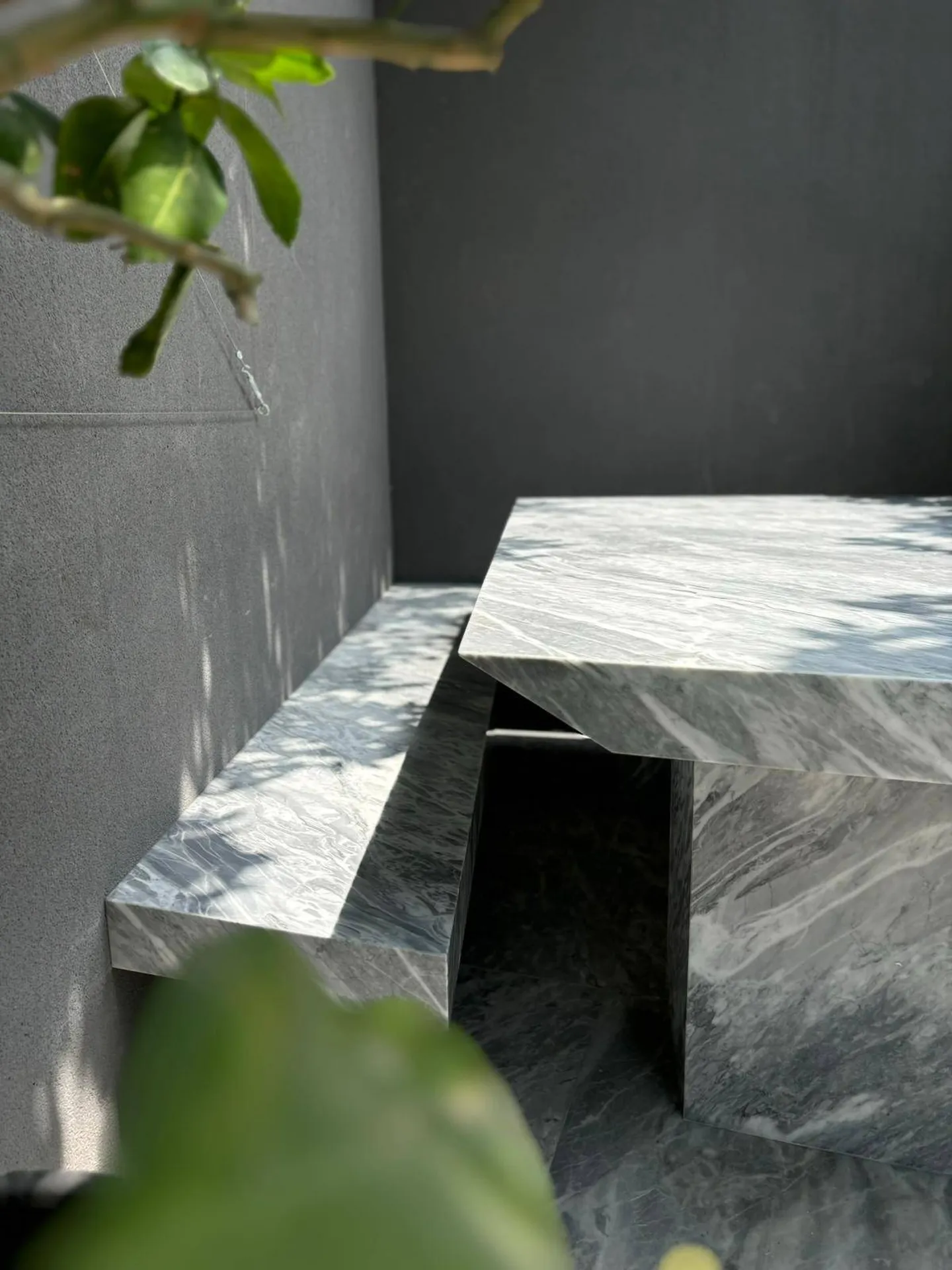 marbre Bardiglio très moderne avec cette végétation tour autour, crée un contraste audacieux non?