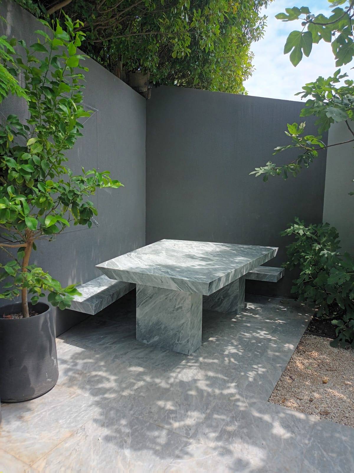 marbre Bardiglio très moderne avec cette végétation tour autour, crée un contraste audacieux non?