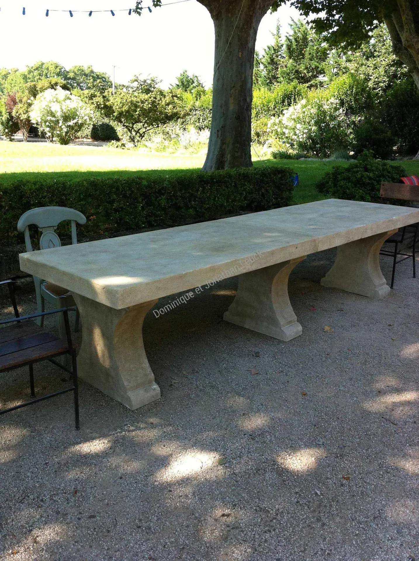 Fabrication de tables et de bancs en pierre blanche d'Estaillades.