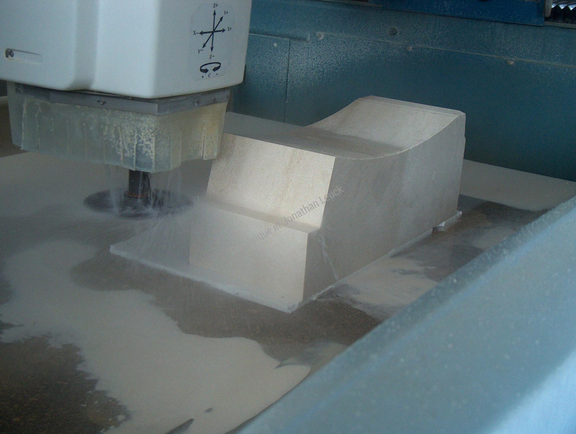 Mise en forme d'une pièce d'un bassin en pierre d'Estaillades.