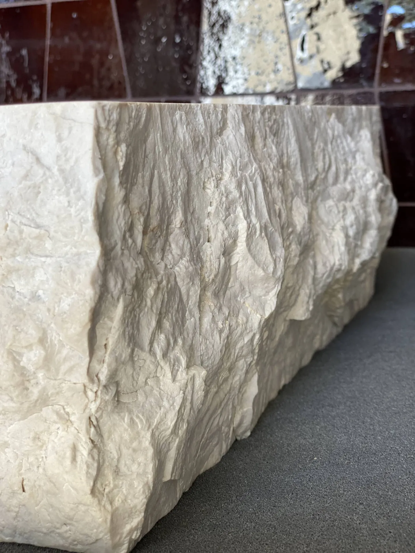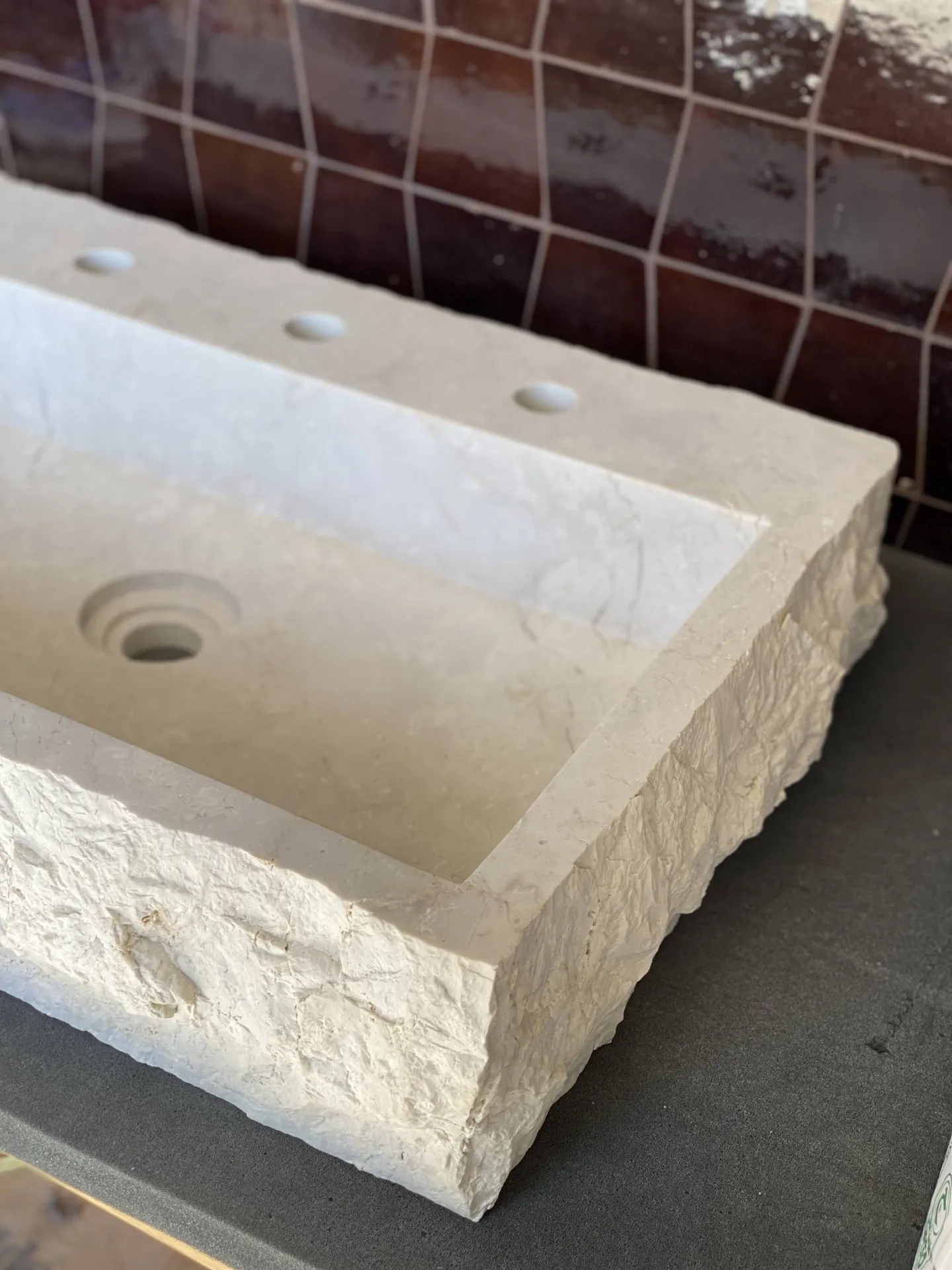 Botticcino. Pour donner du charme et du cachet à cette vasque, nous avons crée une